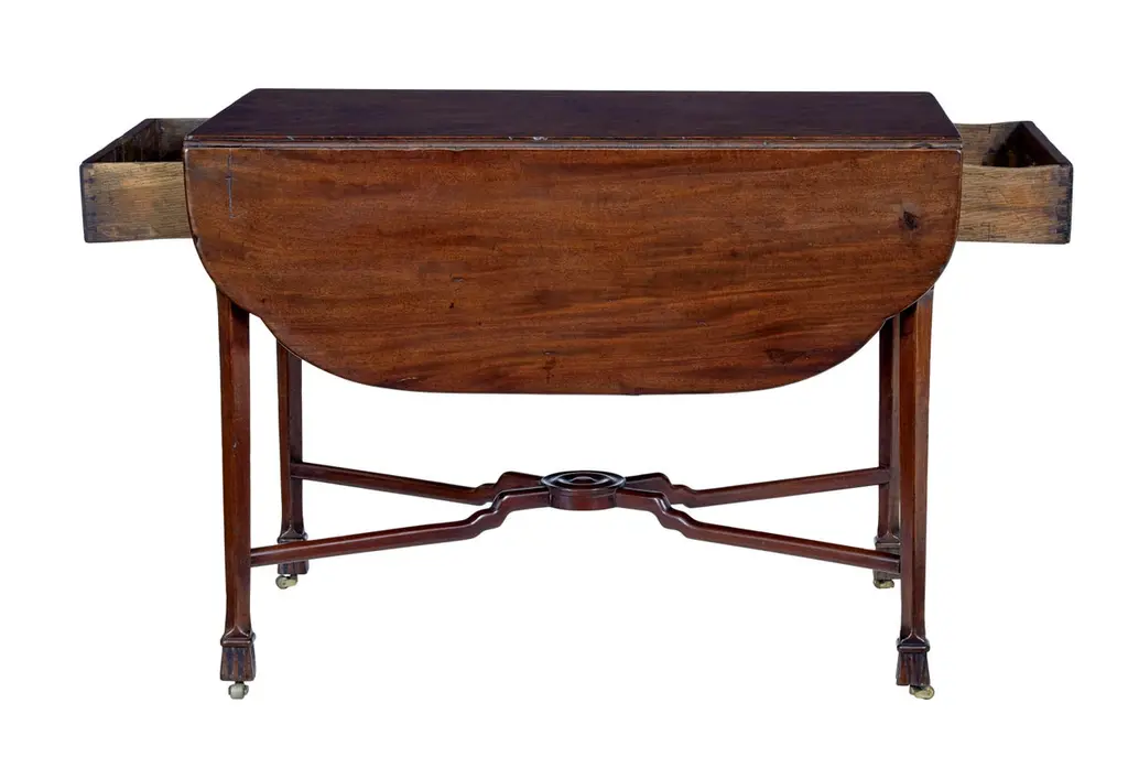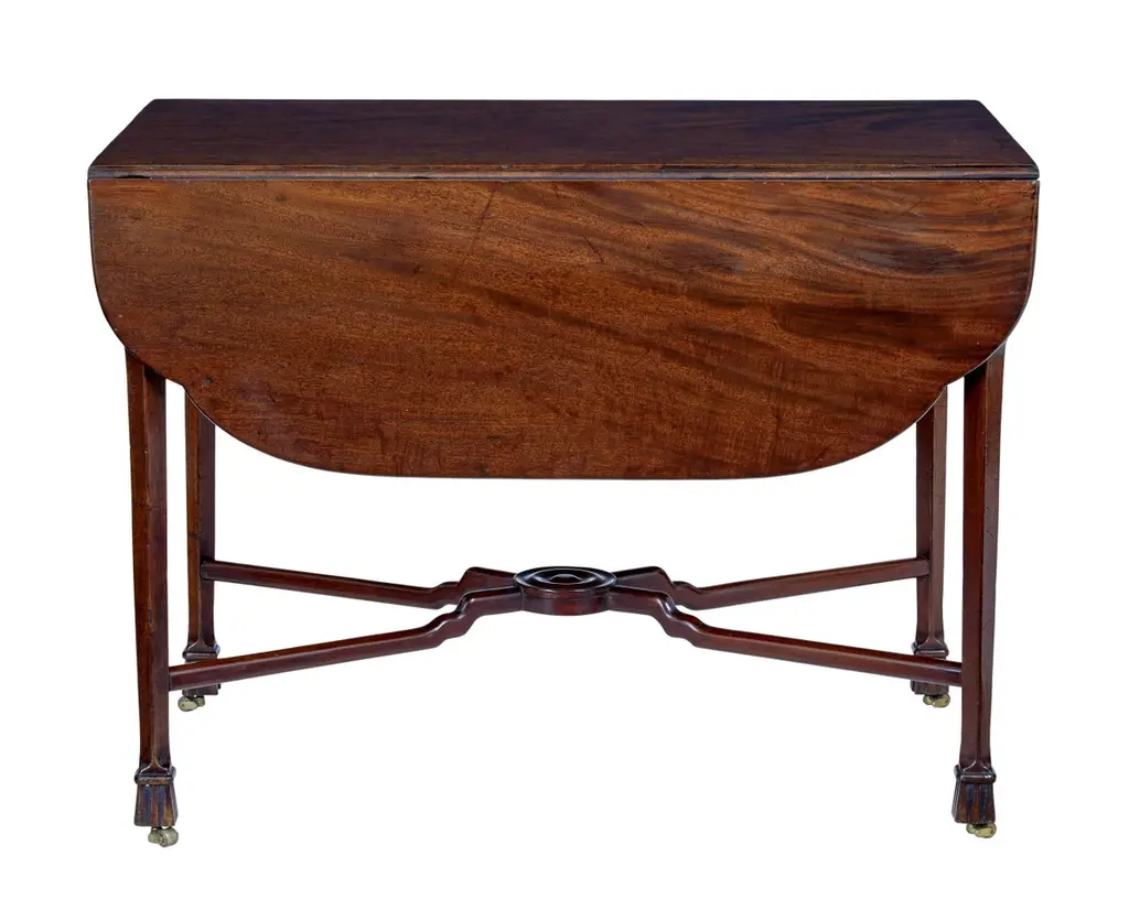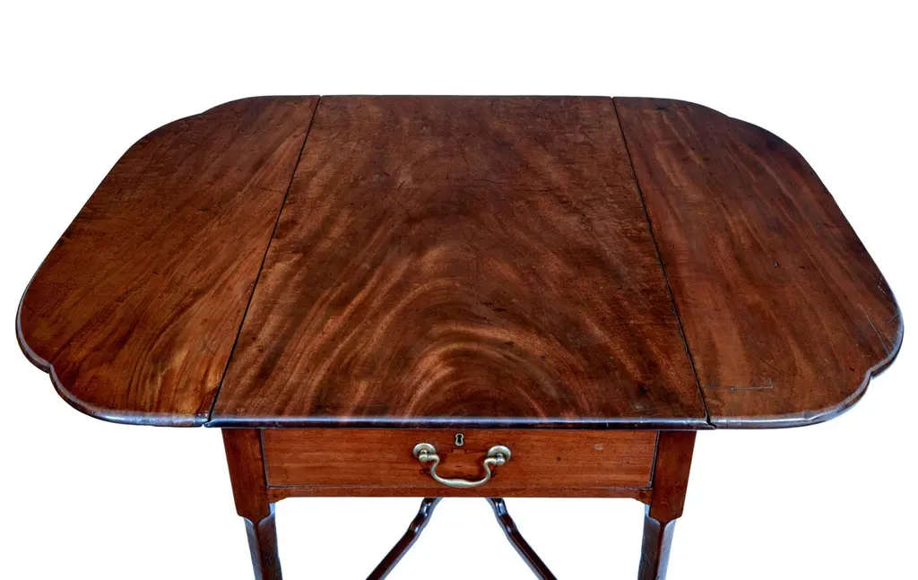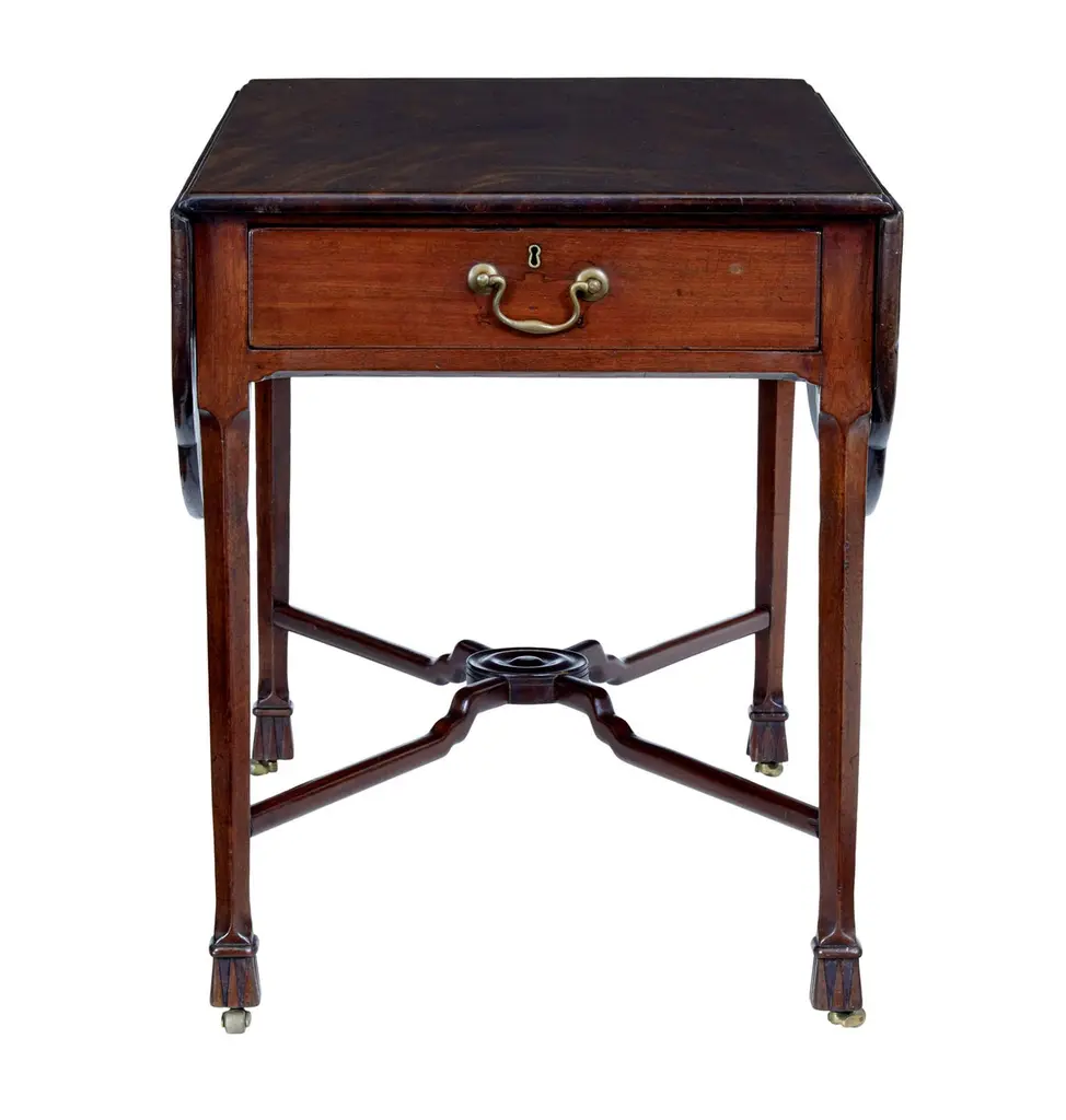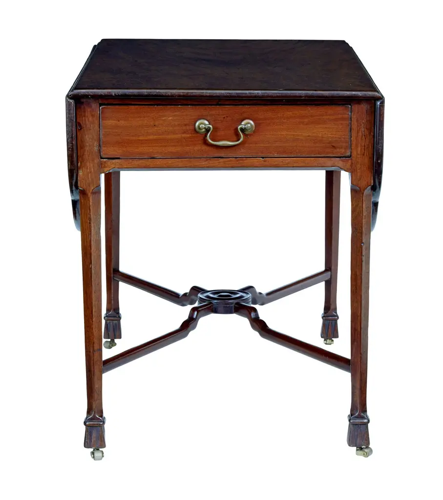 18th Century Chippendale mahogany pembroke table, circa 1770.Here present a chippendale period pembroke table made in the finest mahogany.Shaped drop leaves open to for a flame mahogany top. Drawer fitted with later brass swan neck handle on each end. Standing on 4 straight legs united by stretcher with central roundel.Terminating on brass castors.Surface marks to top surface, but in original condition.