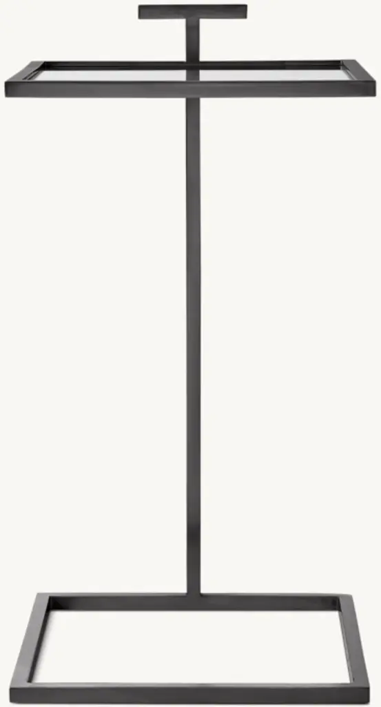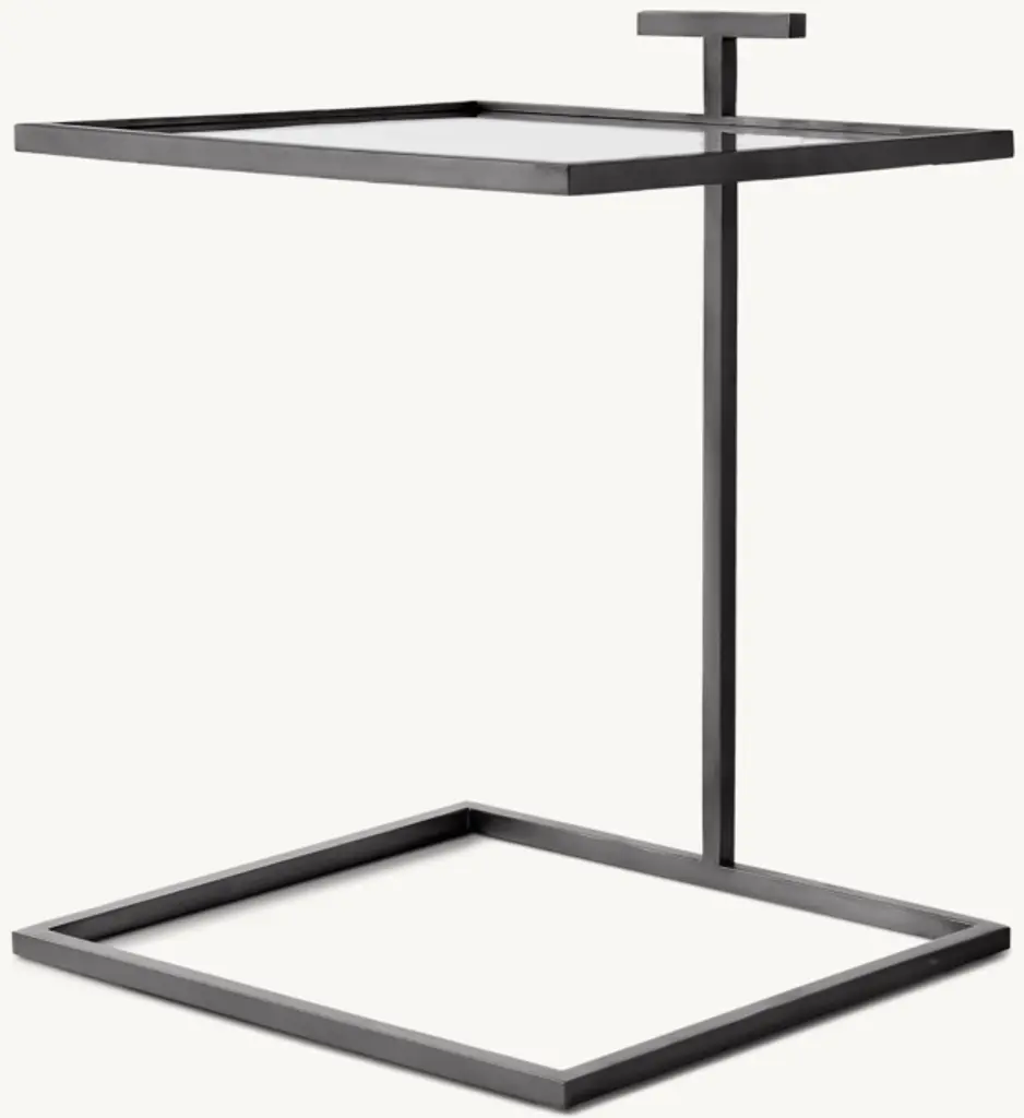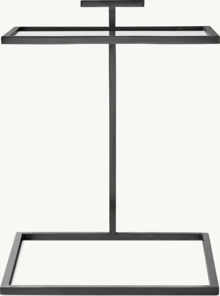 Our table's clean geometry reflects the understated Modernist design aesthetic of early 20th-century America. Its cantilevered, stainless steel frame is inset with tempered glass, highlighting the compact, elegant proportions.
