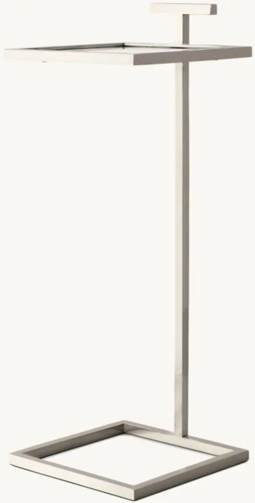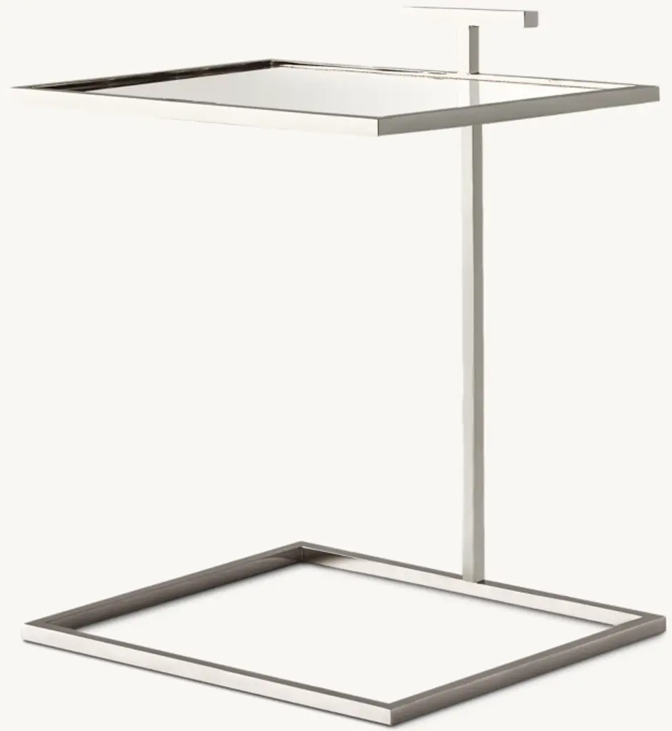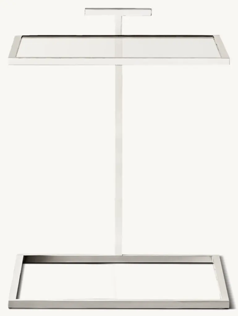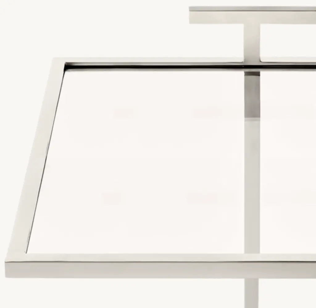 Our table's clean geometry reflects the understated Modernist design aesthetic of early 20th-century America. Its cantilevered, stainless steel frame is inset with tempered glass, highlighting the compact, elegant proportions.