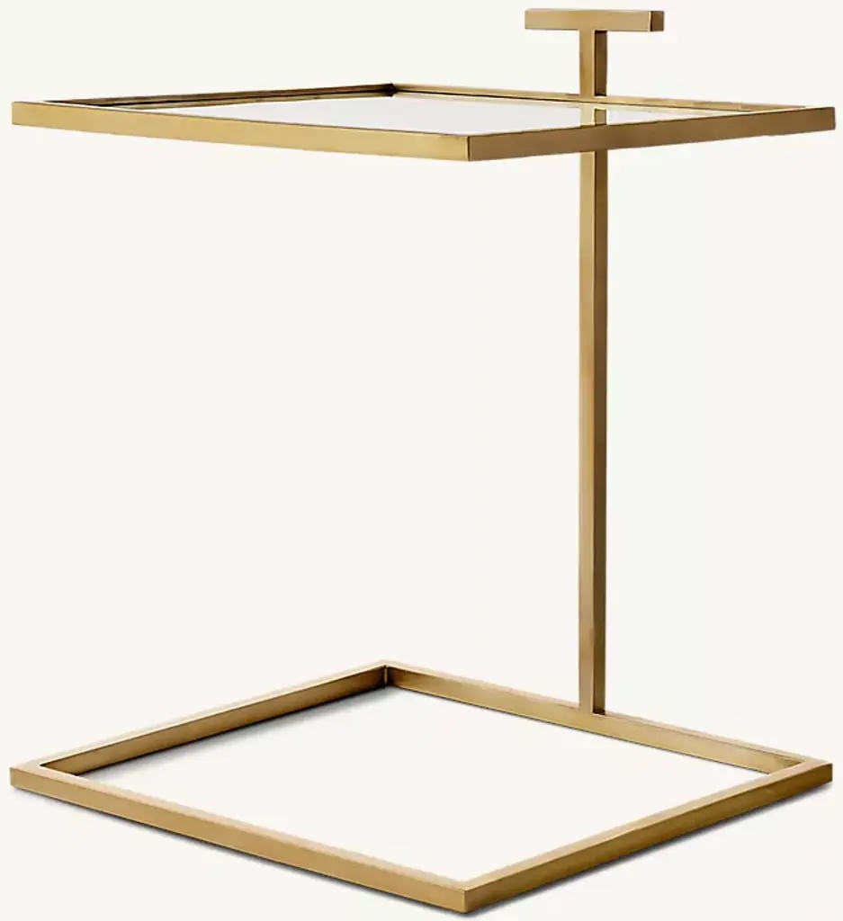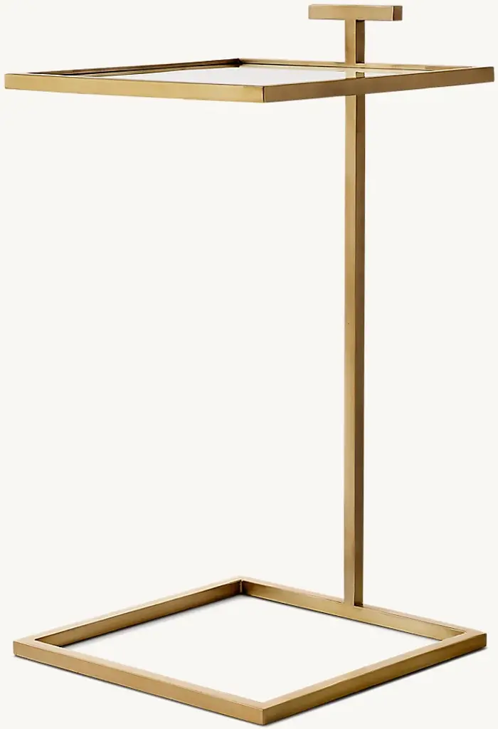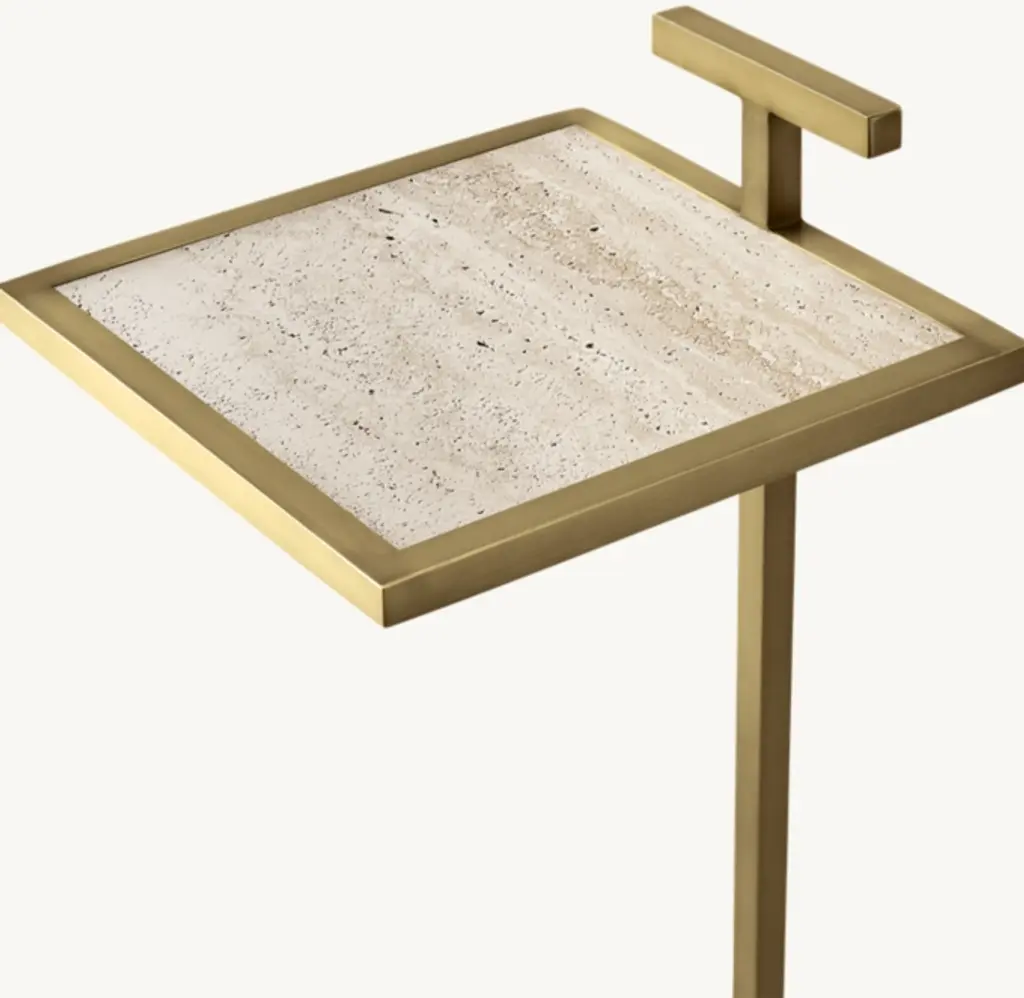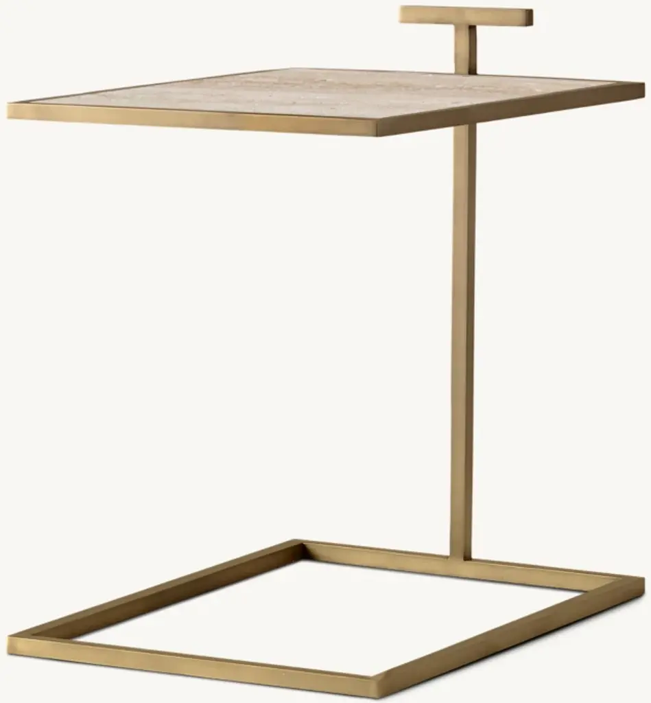 Our table's clean geometry reflects the understated Modernist design aesthetic of early 20th-century America. Its cantilevered, stainless steel frame is inset with natural stone, highlighting the compact, elegant proportions.