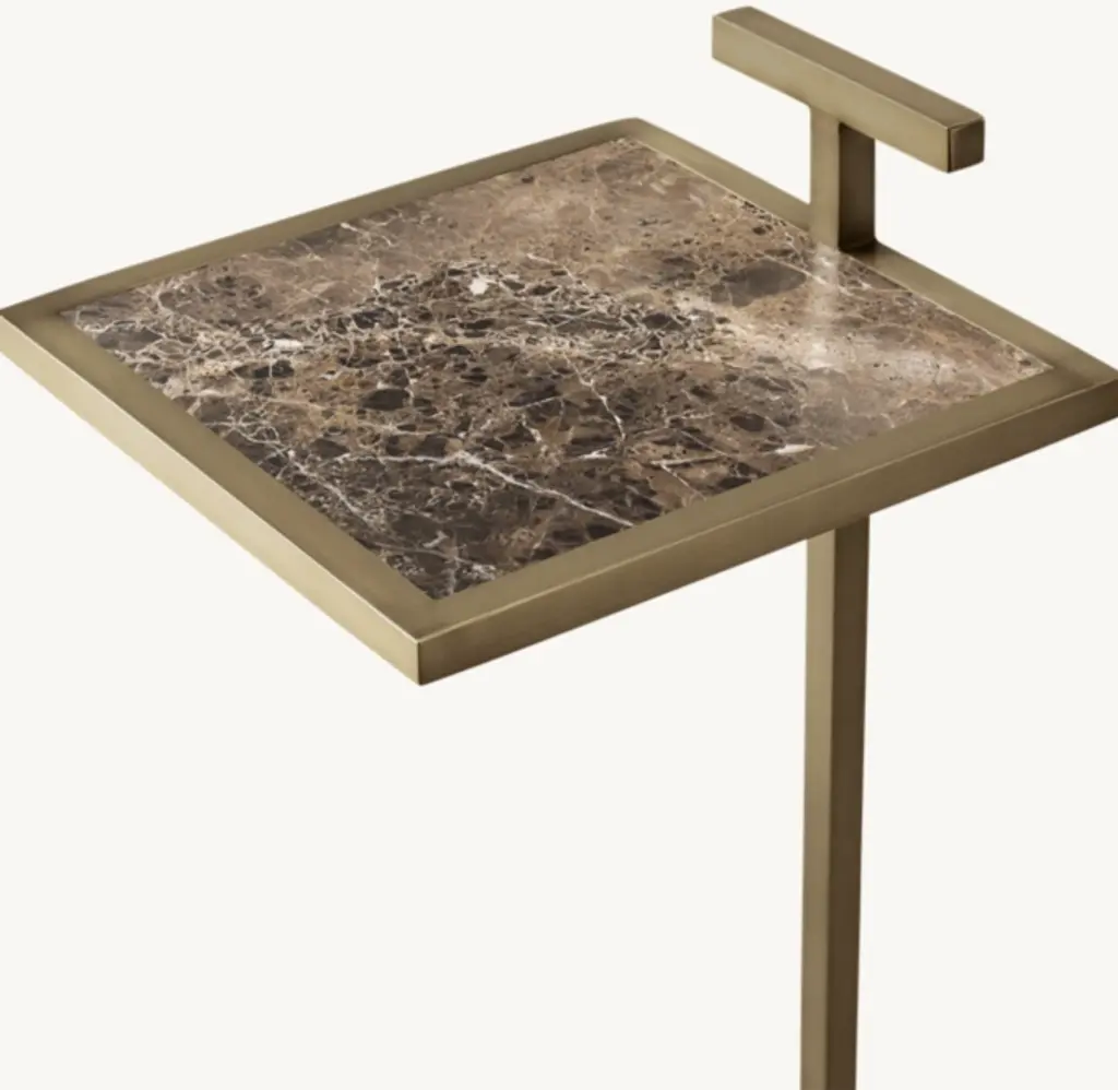 Our table's clean geometry reflects the understated Modernist design aesthetic of early 20th-century America. Its cantilevered, stainless steel frame is inset with natural stone, highlighting the compact, elegant proportions.