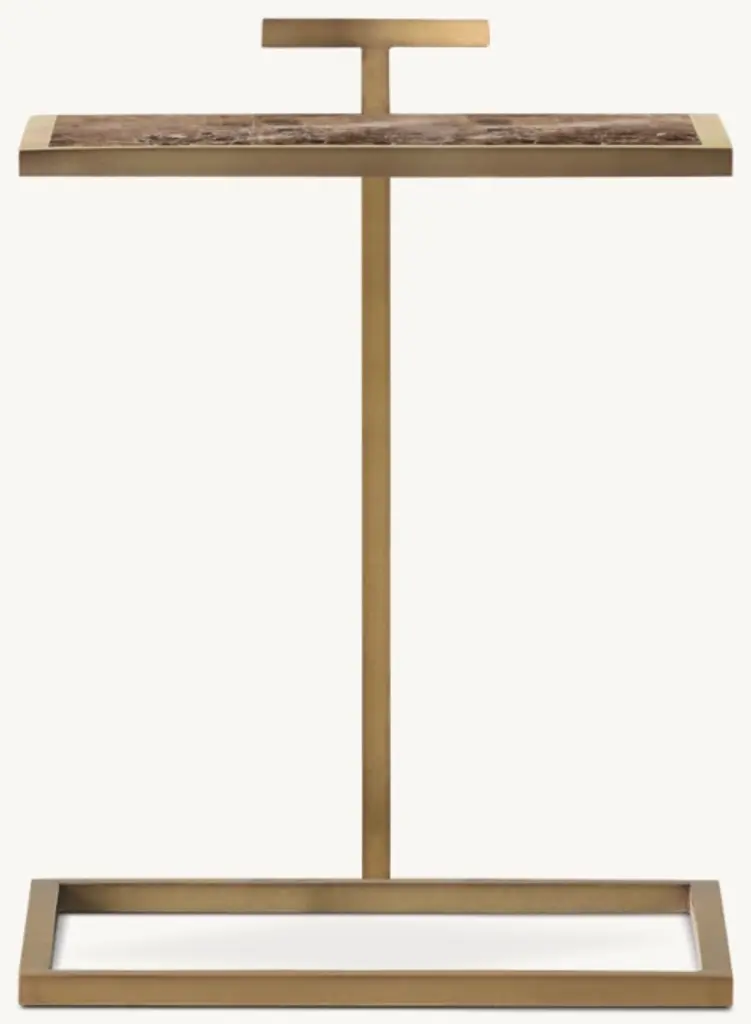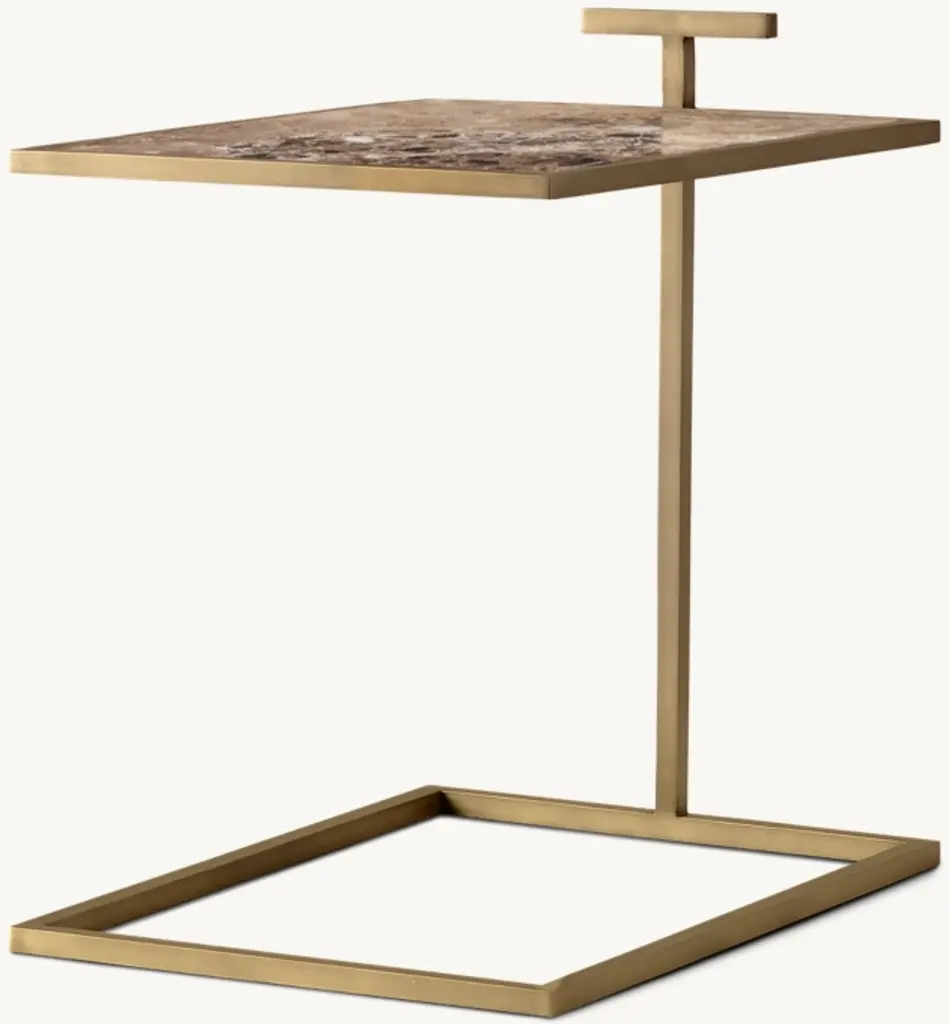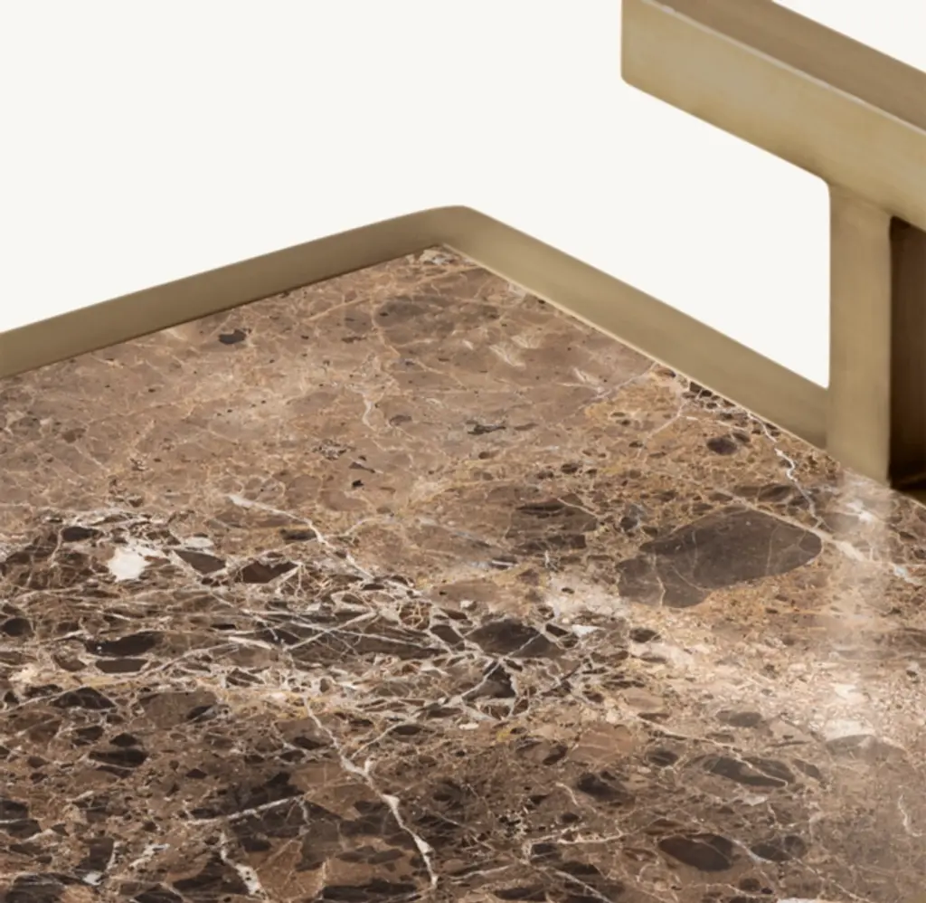 Our table's clean geometry reflects the understated Modernist design aesthetic of early 20th-century America. Its cantilevered, stainless steel frame is inset with tempered natural stone, highlighting the compact, elegant proportions.