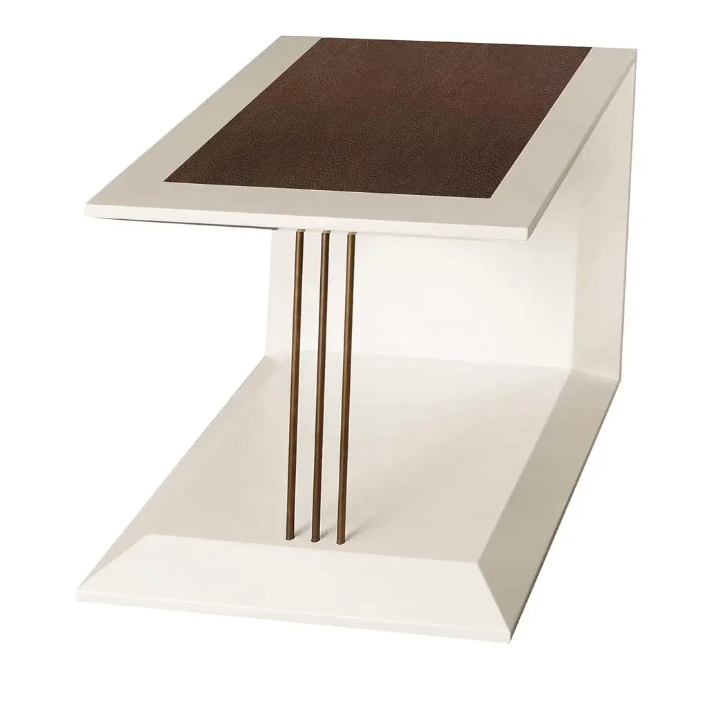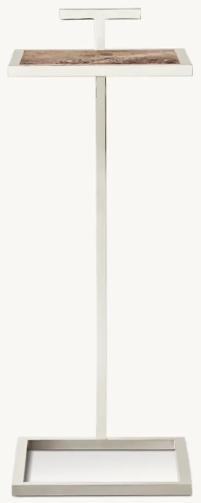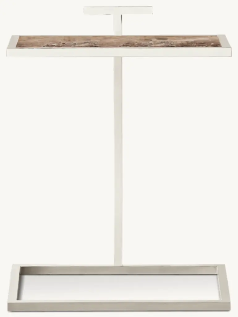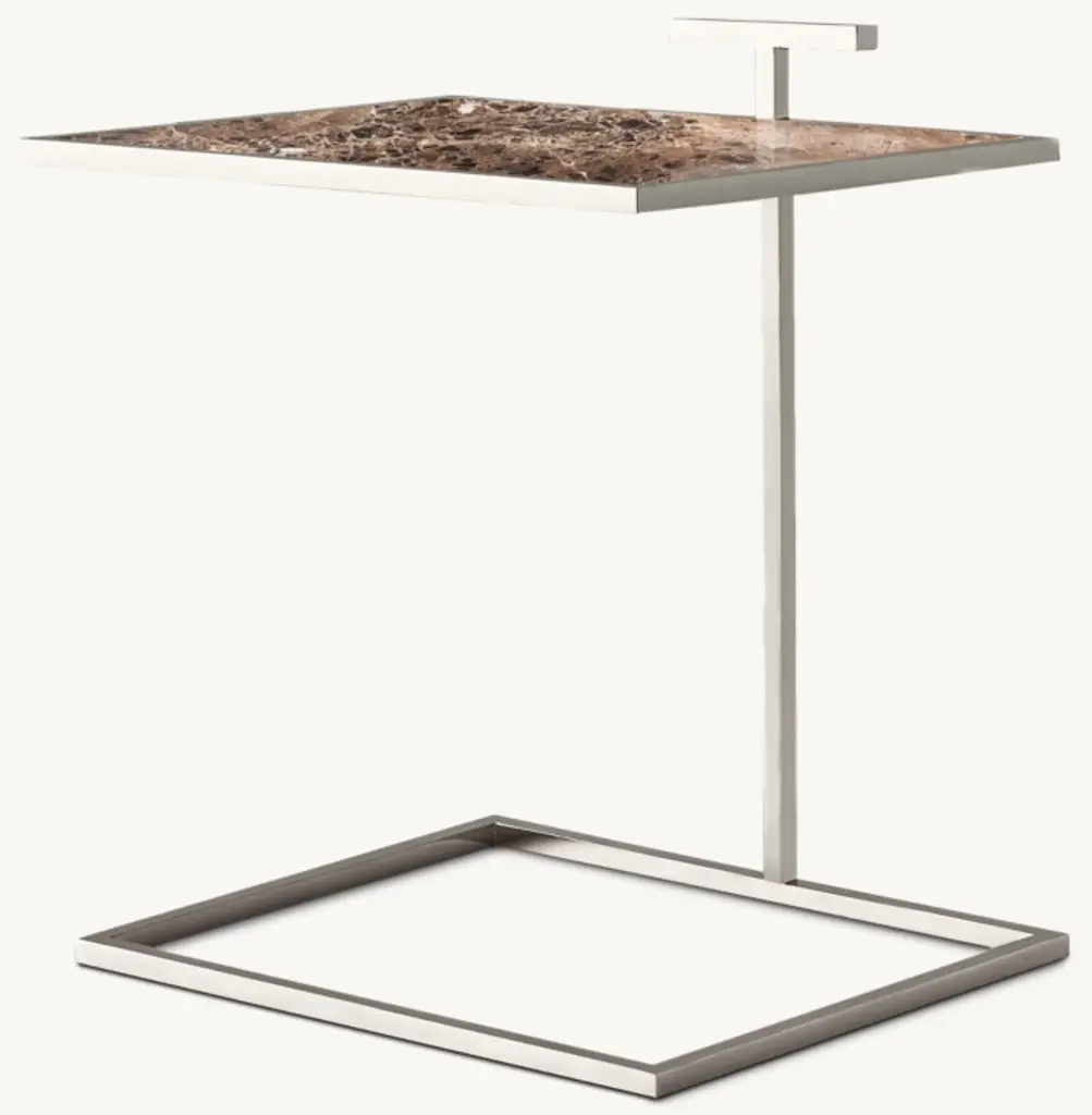 Our table's clean geometry reflects the understated Modernist design aesthetic of early 20th-century America. Its cantilevered, stainless steel frame is inset with tempered natural stone, highlighting the compact, elegant proportions.