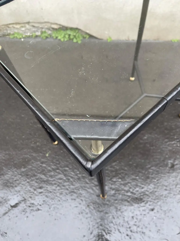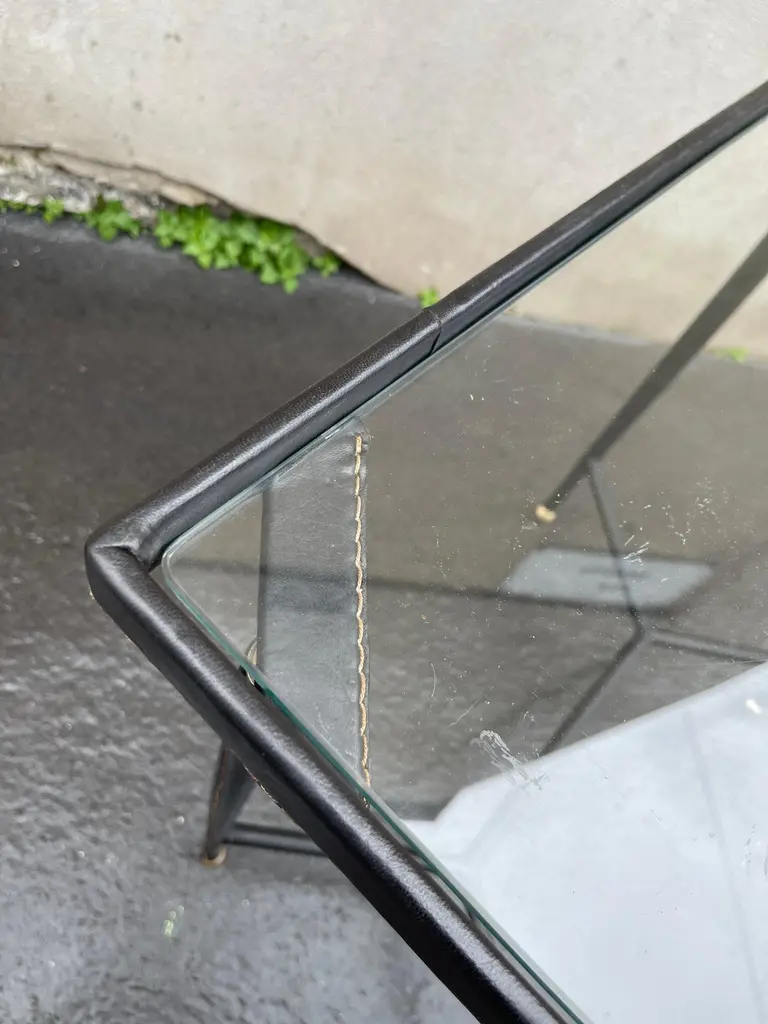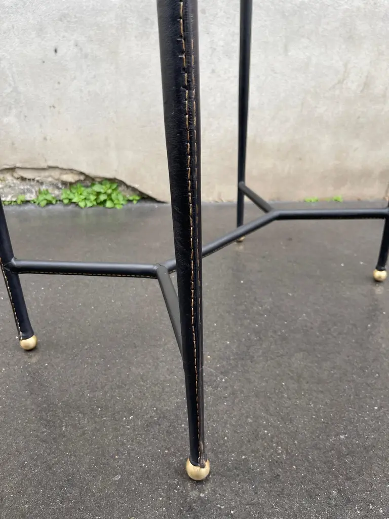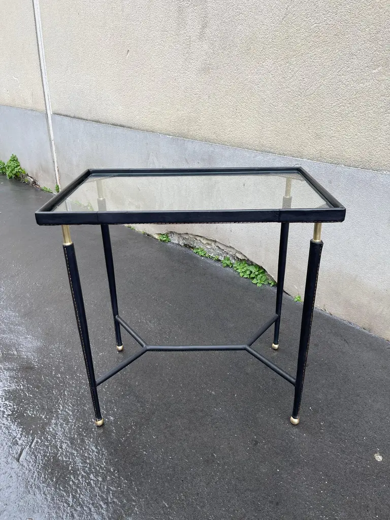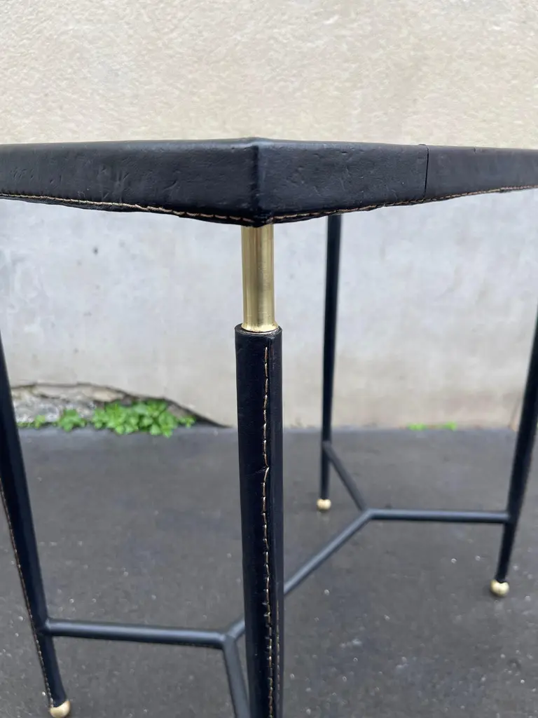 1950's Stitched leather side table by Jules LeleuDesigned for trans-atlantique ships as "Le France" and others