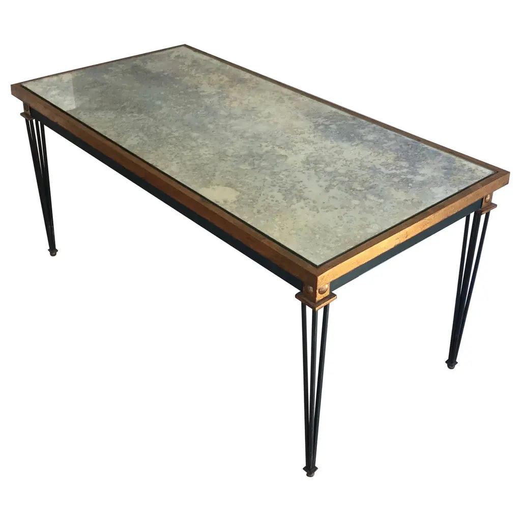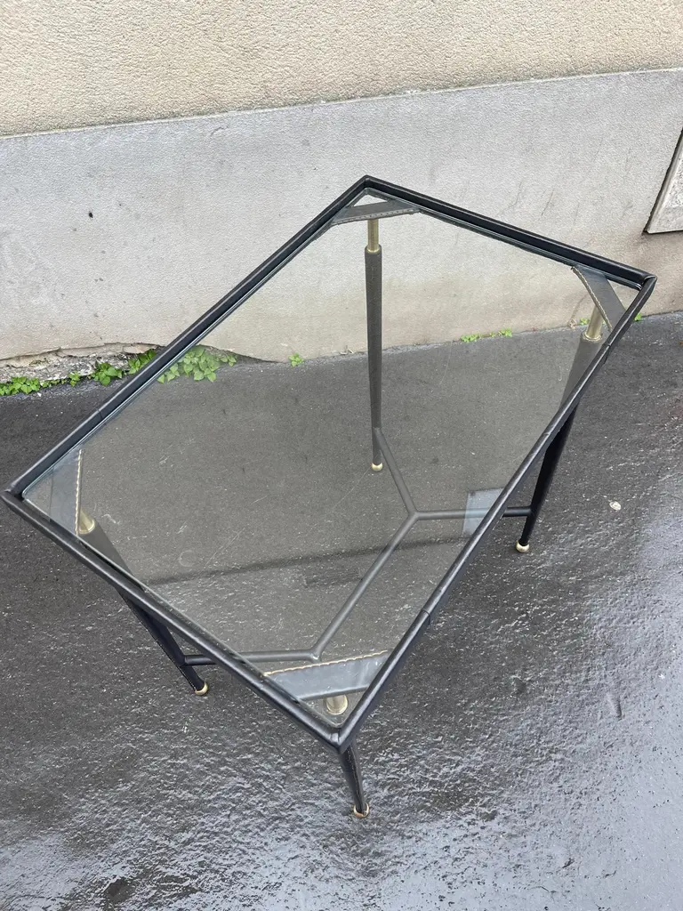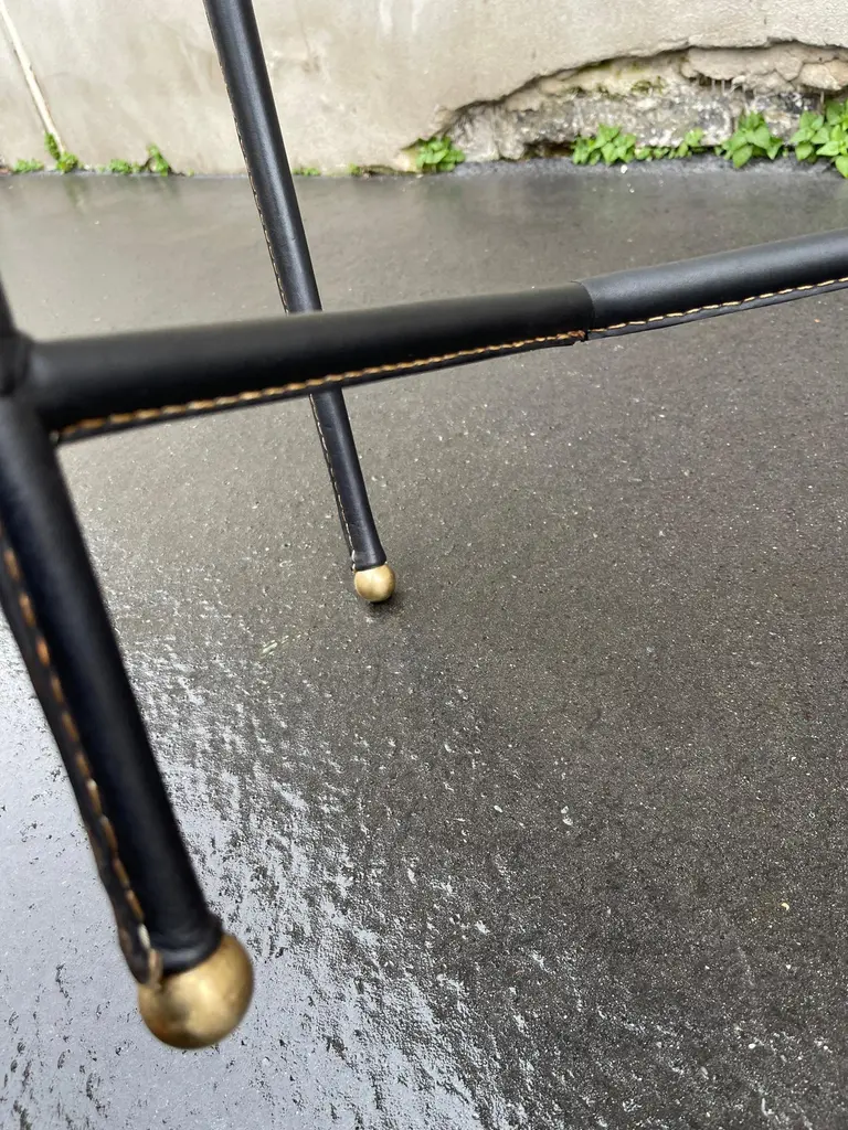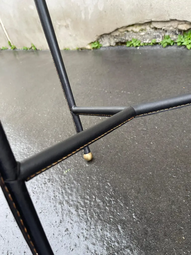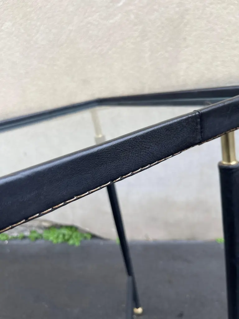 1950's Stitched leather side table by Jules LeleuDesigned for trans-atlantique ships as "Le France" and others