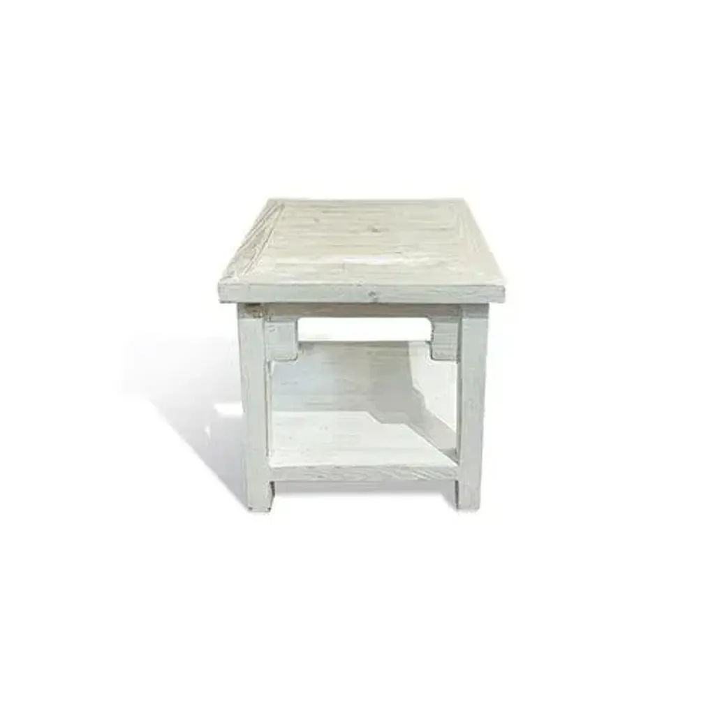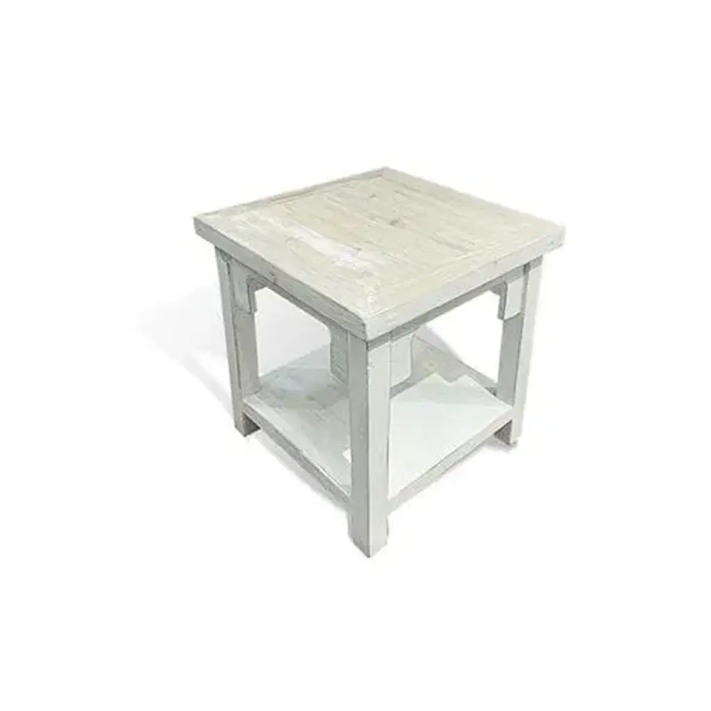 Asian Square White Wash Side Table is made out of Elm. It can place next to sofa or nightstand. Dimensions: 21.5"W x 21.5"D x 23.5"H, Bottom storage is 21"W x 16 .5"D x 17.5"H