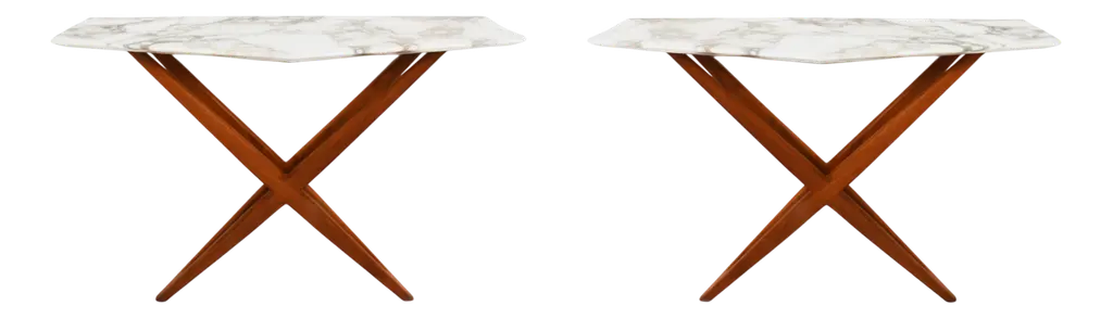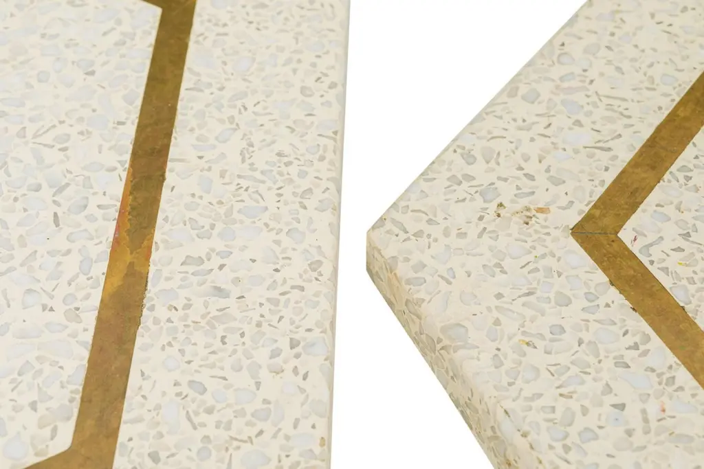 2 Harvey Probber White Terrazzo And Bronze Inlay Hexagonal End / Side Tables