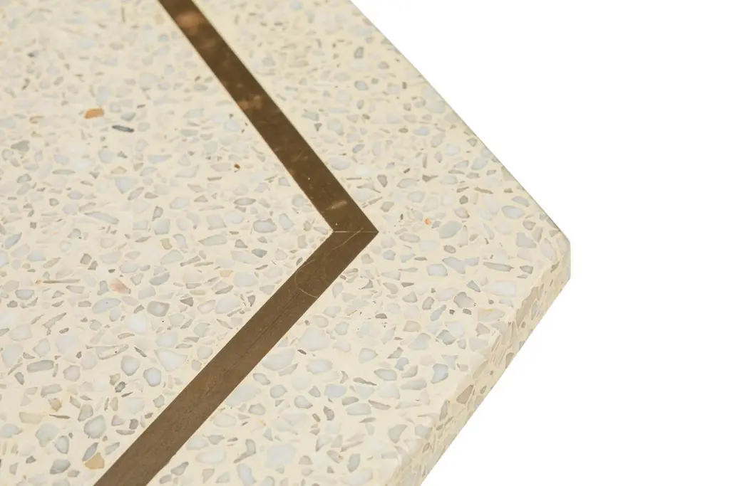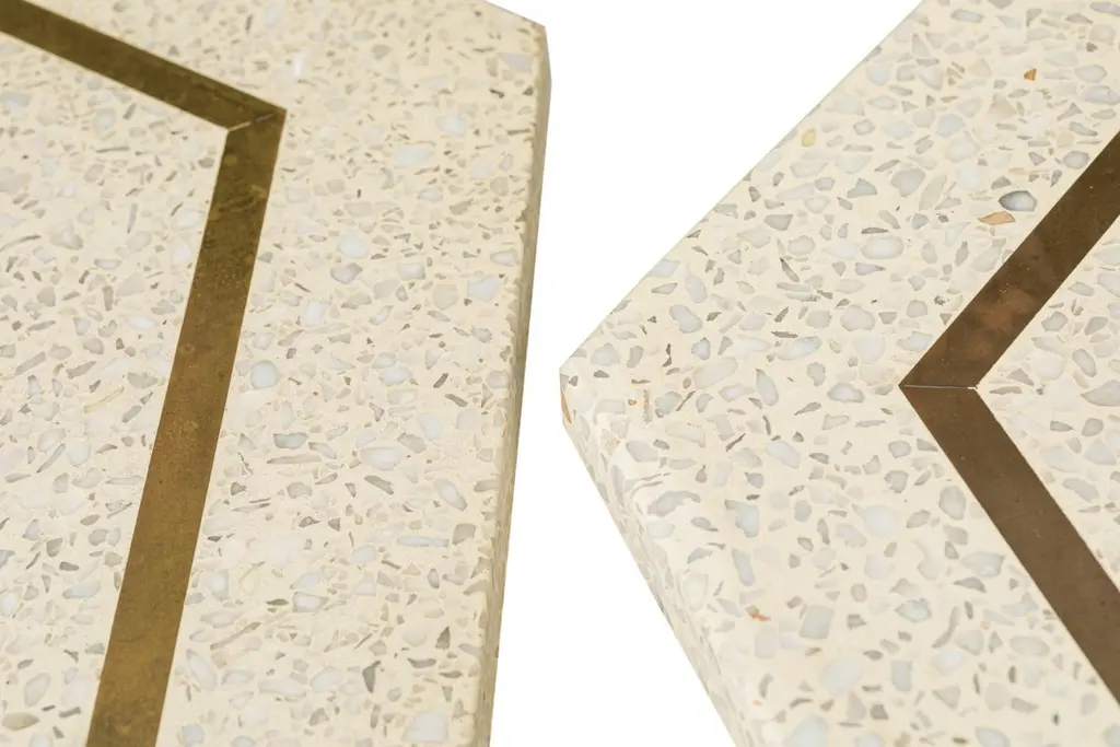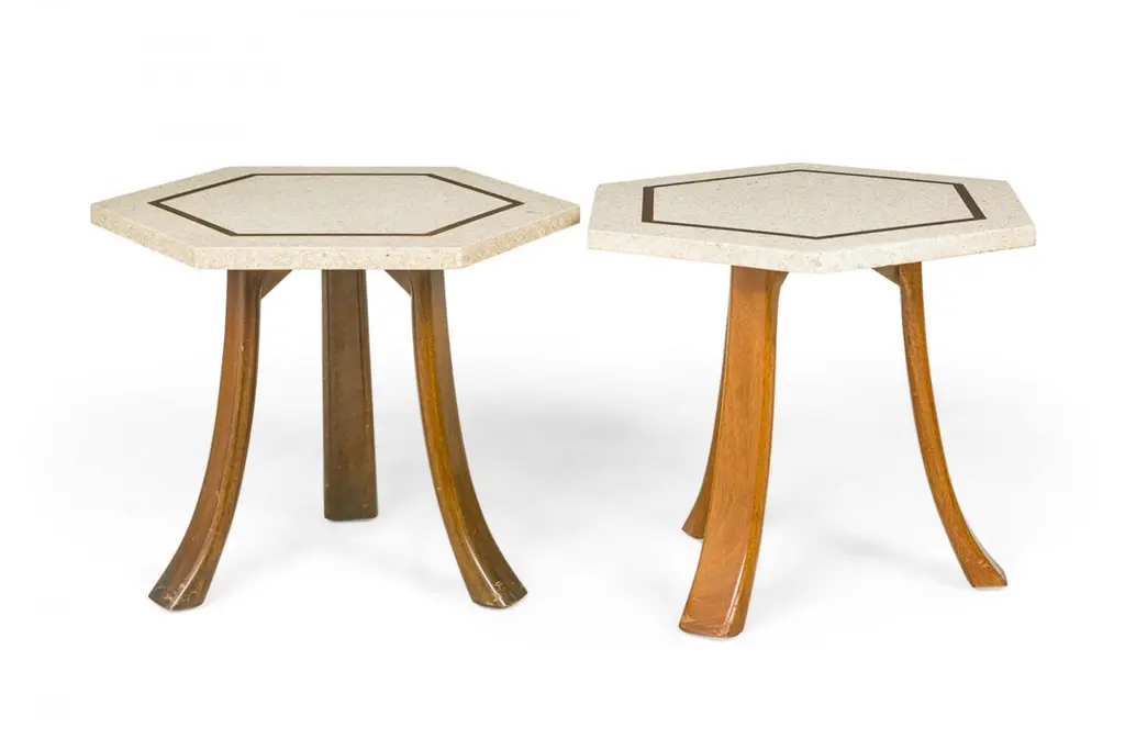 2 Harvey Probber White Terrazzo And Bronze Inlay Hexagonal End / Side Tables