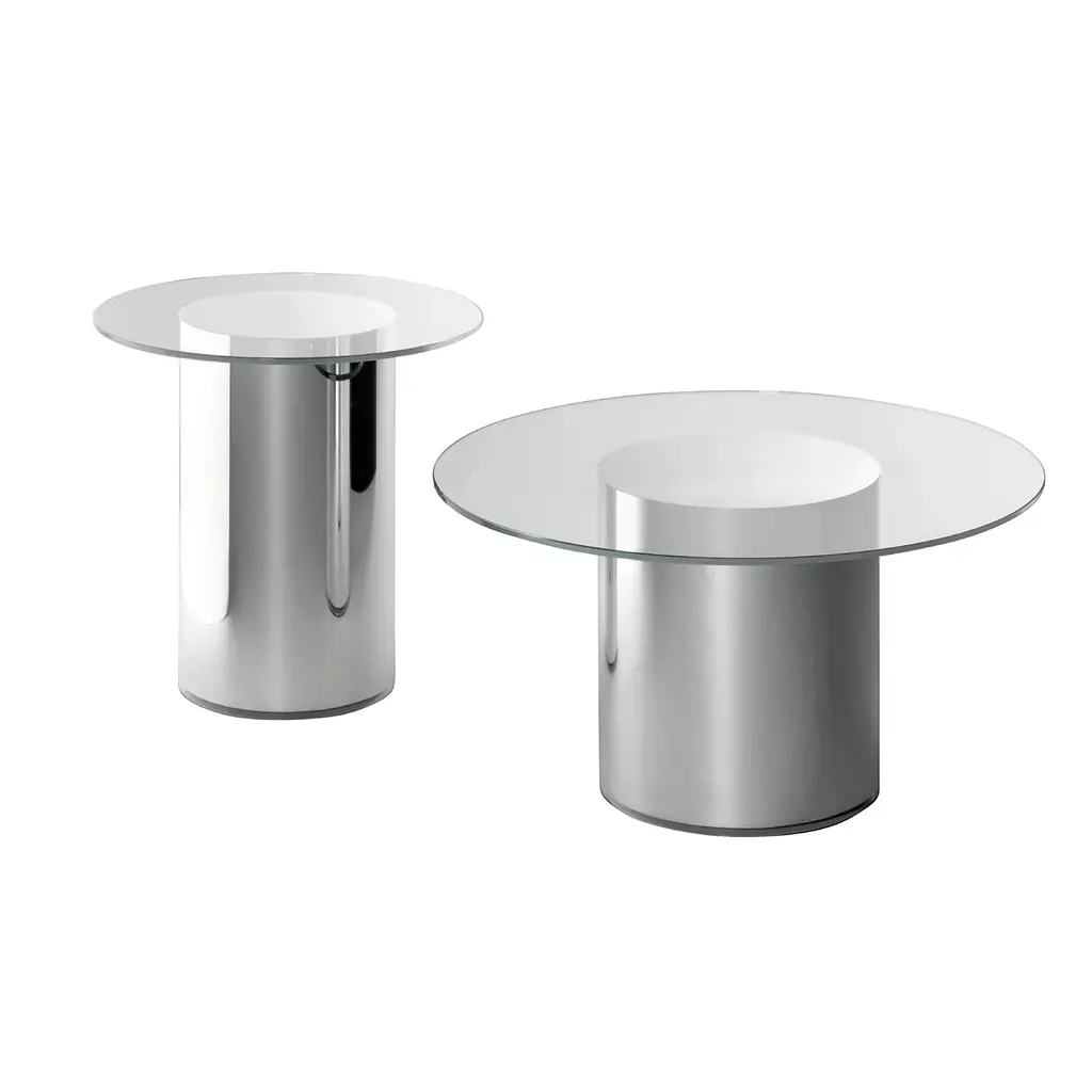 Some 20 years on, designers Ramón Úbeda and Otto Canalda’s collaboration continues to appeal, with an offhand elegance and vintage industrial look. Available in a pair of heights, 2001 Side Table is fashioned with a pyrex-tube mirrored base. In unison with the metallic brilliance of the ultra-clear, tempered glass top, the rou nd table creates an optical illusion, perhaps beckoning to a bright future.