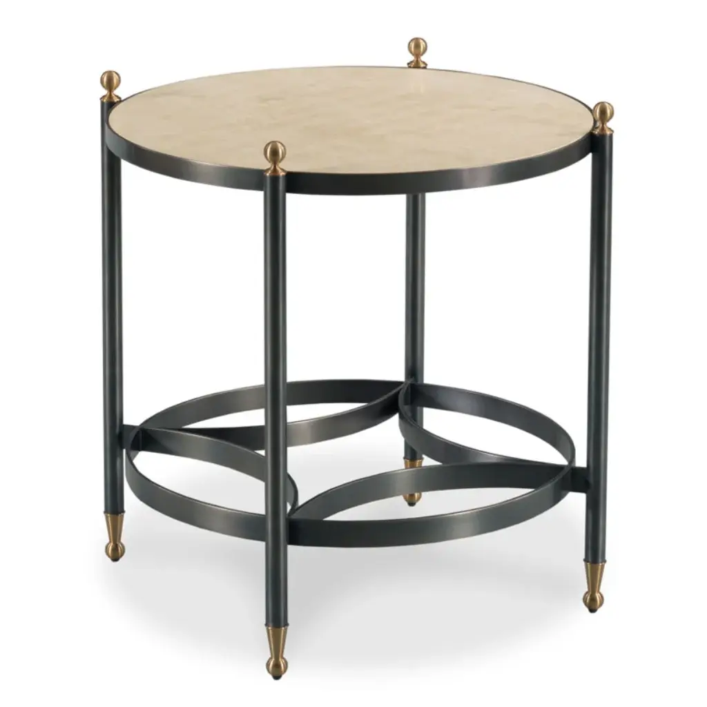 A revisited Art Deco style for Cassis side table. An elegant piece of furniture with a bold character, perfect to be inserted in settings of different styles. The table features a structure in lost-wax cast brass and top in walnut and marble.Cassis side table with structure in lost-wax cast brass. Top in walnut J284N and white Statuario marble.