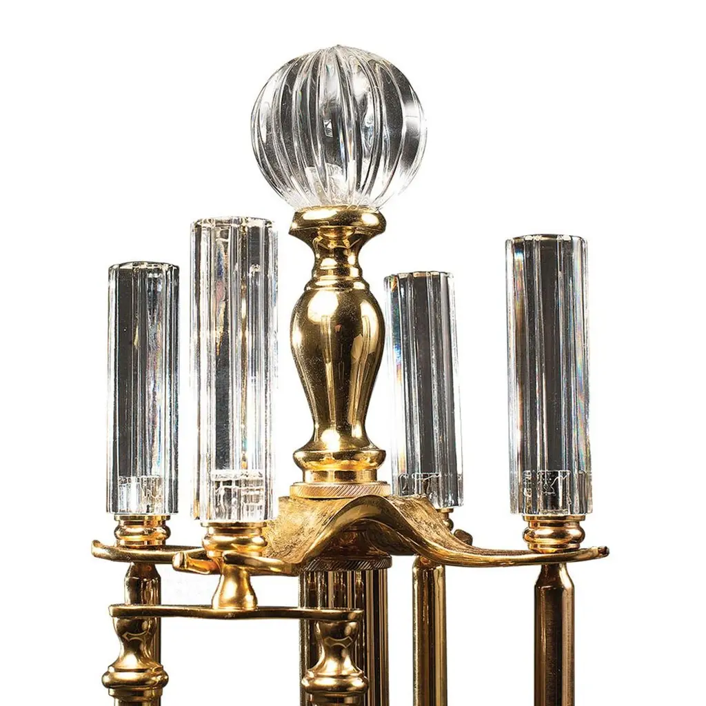 21st Century Golden Bronzeand Crystal Fireplace Tools