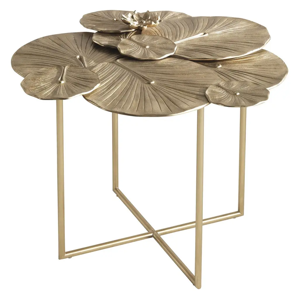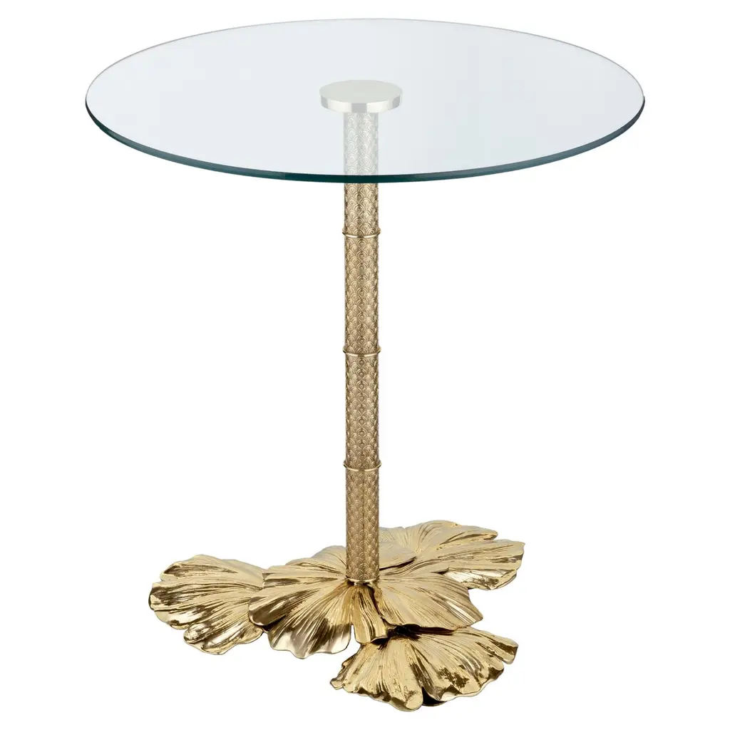 The beauty of nature is transformed into a sophisticated decorative element in Monet table: a scenographic piece of furniture where the lotus leaf motif in hand-chiseled brass casting is the element of wonder, a connection with one of the most elegant flowers. Monet side table in hand-chiseled cast brass.