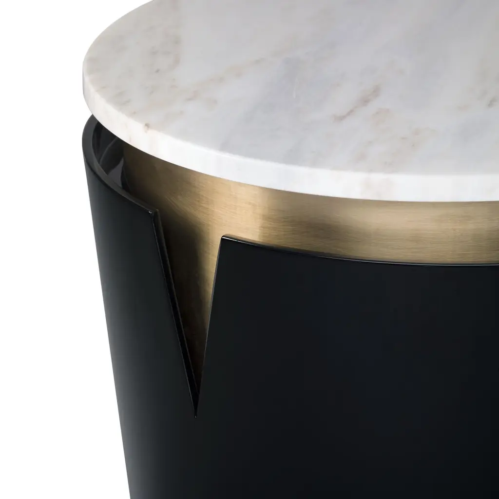 Moon Side Table Estremoz Marble Top and Brass, Handcrafted in Portugal by DuisttThe Moon side table is inspired by the architecture of the Givenchy flagship store. An intriguing design with a brushed brass detail cut and an Estremoz marble top.Shown in Black lacquer, Estremoz Marble Top, and Brass Details. Custom sizes and materials are available upon request, and production lead time is 8 to 10 weeks. Designed and manufactured by Duistt in Portugal - Europe. Duistt arose in 2014 from the will and desire to produce high-end furniture pieces with special attention to quality and timeless design. Blending ancient knowledge and techniques with contemporary aesthetics, Duistt’s design approach elevates the user experience, guaranteeing them delightful pieces crafted with art that are unique and can last generations.