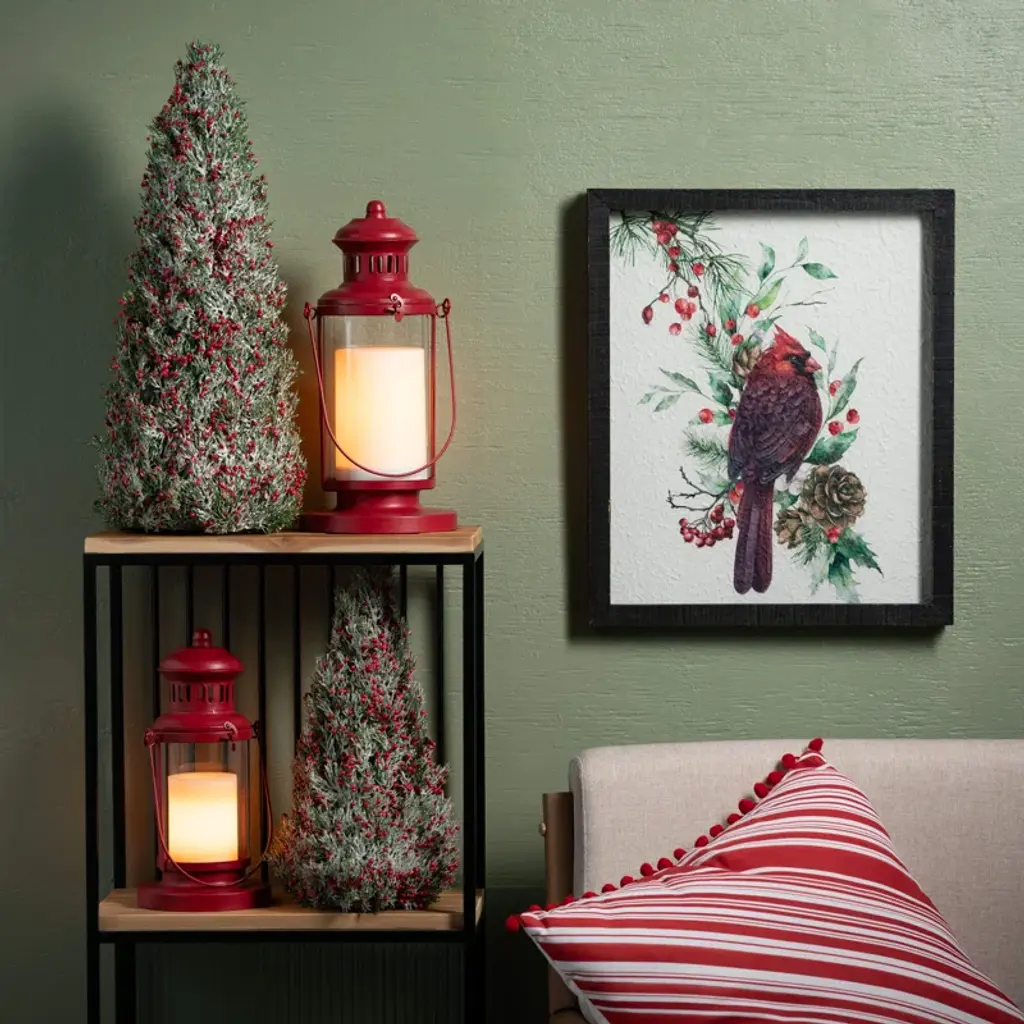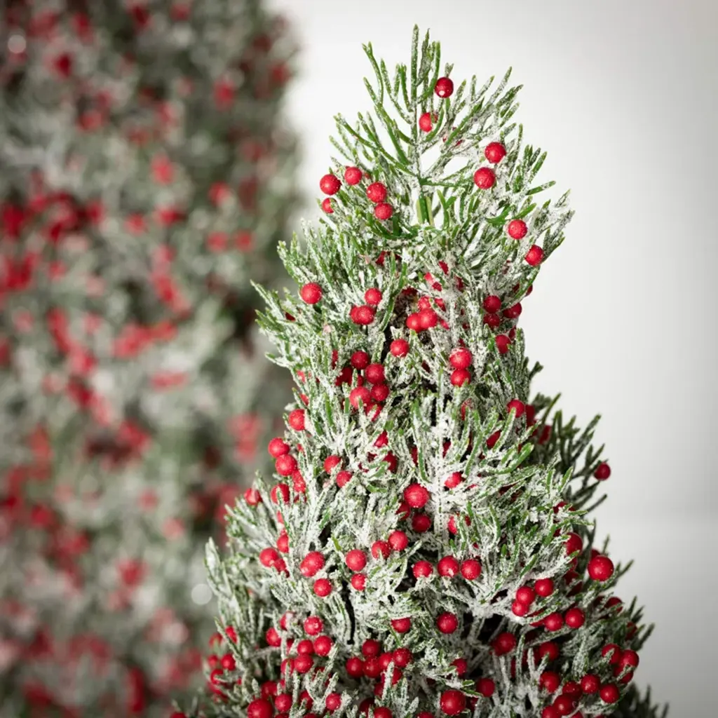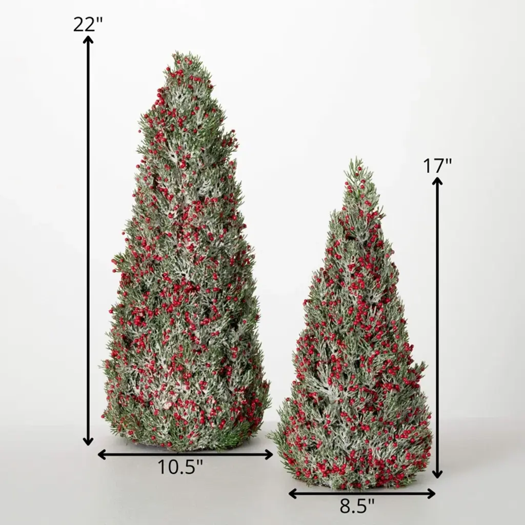 22" & 17" Artificial Christmas Red Frosted Berry Tree Set Of 2, Green-Red (Set Of 2)