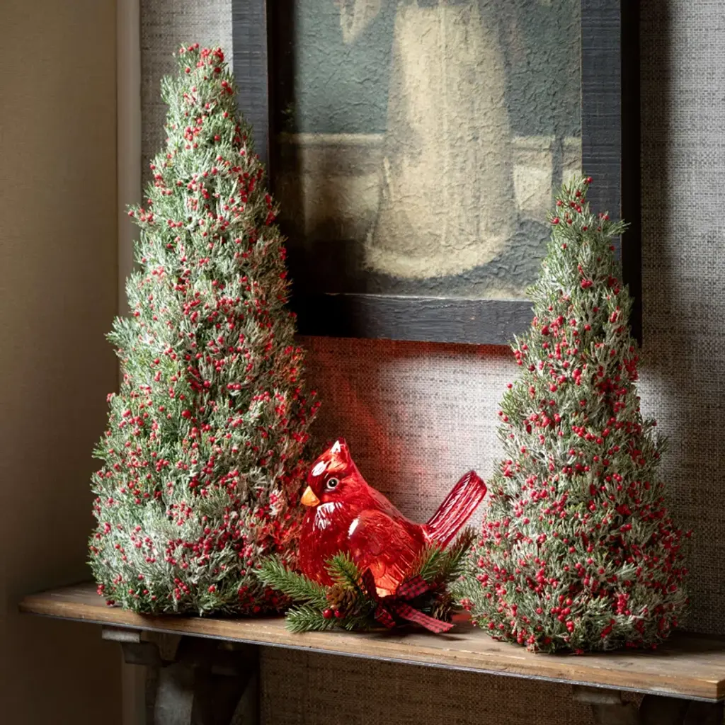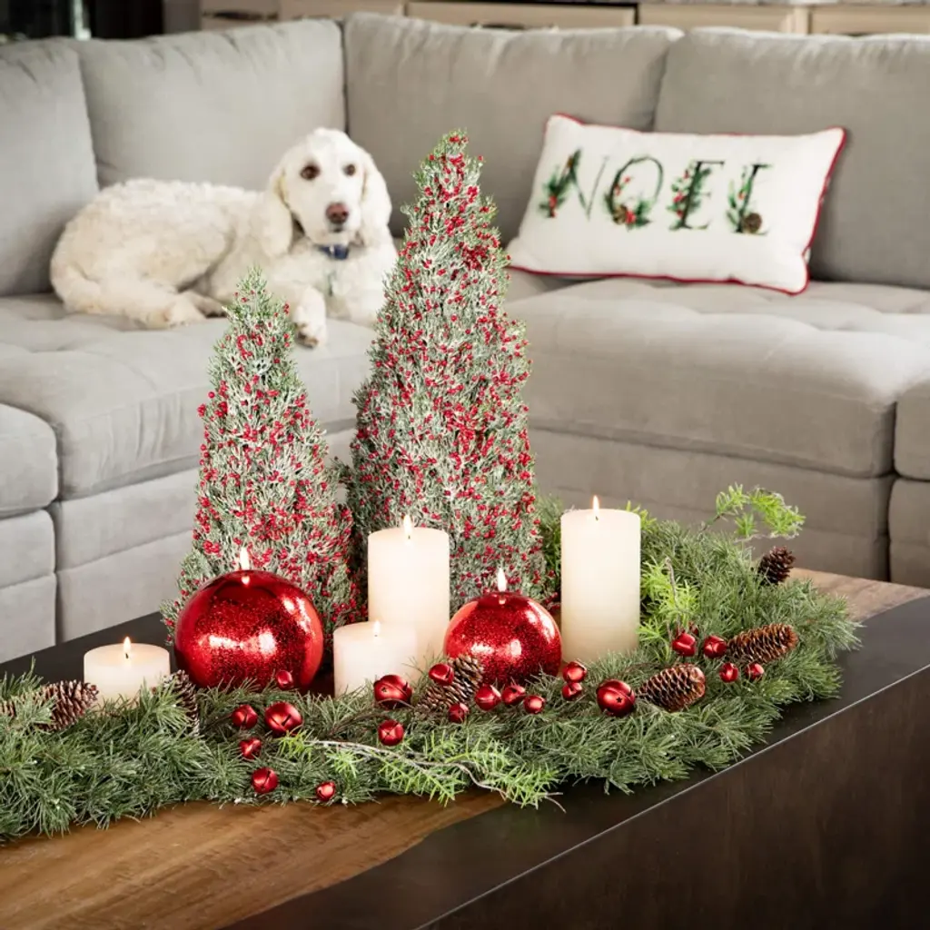 This set of two petite pine tabletop christmas trees are perfect for adding a bit of festive cheer to any space. Versatile in height, they're petite enough to fit on any surface yet pack plenty of decorative punch. Simply place them on end tables or countertops for an instant holiday vignette that will have guests oohing and aahing. The perfect addition to your yuletide decor, this whimsical berry tree set will make every room feel merrier and brighter this christmas.