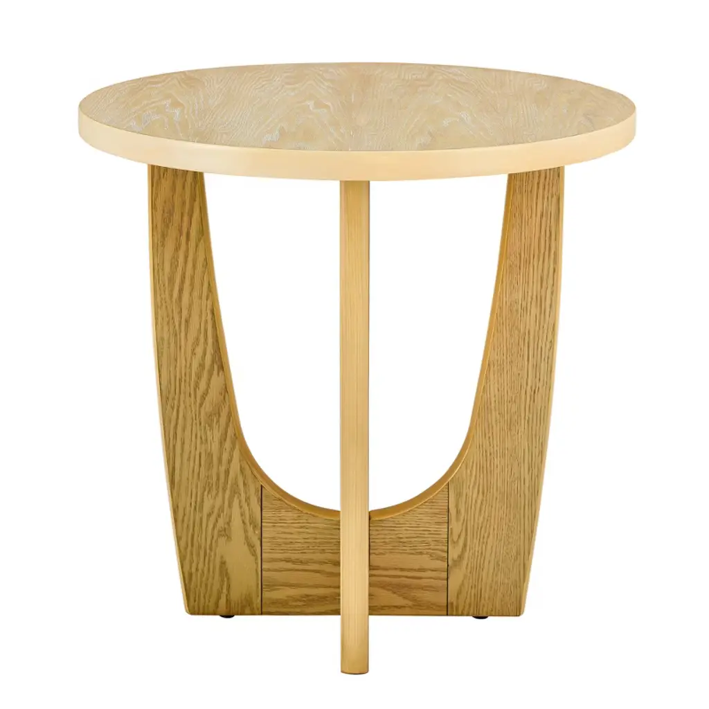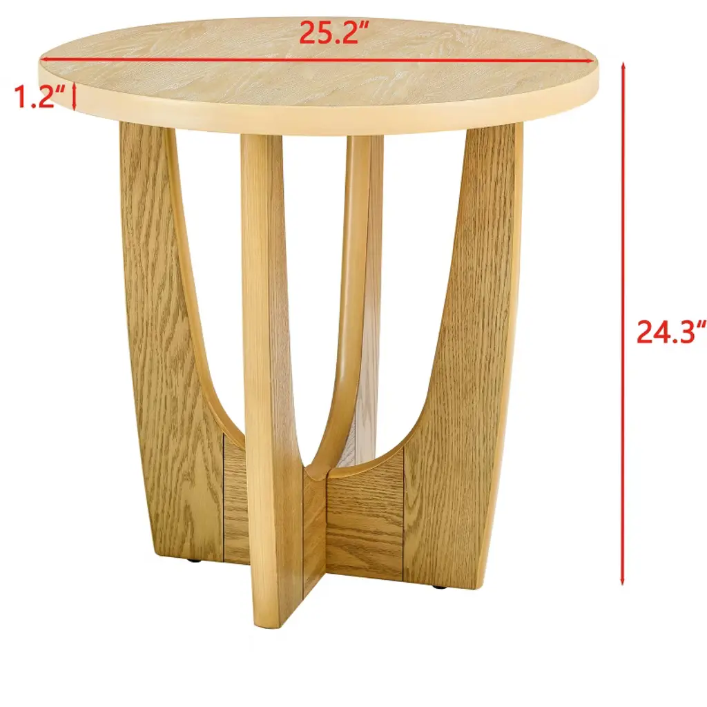25in Round End Table, Wooden Side Table, Night Stand For Living Room ,Reception Room (Oak Color)