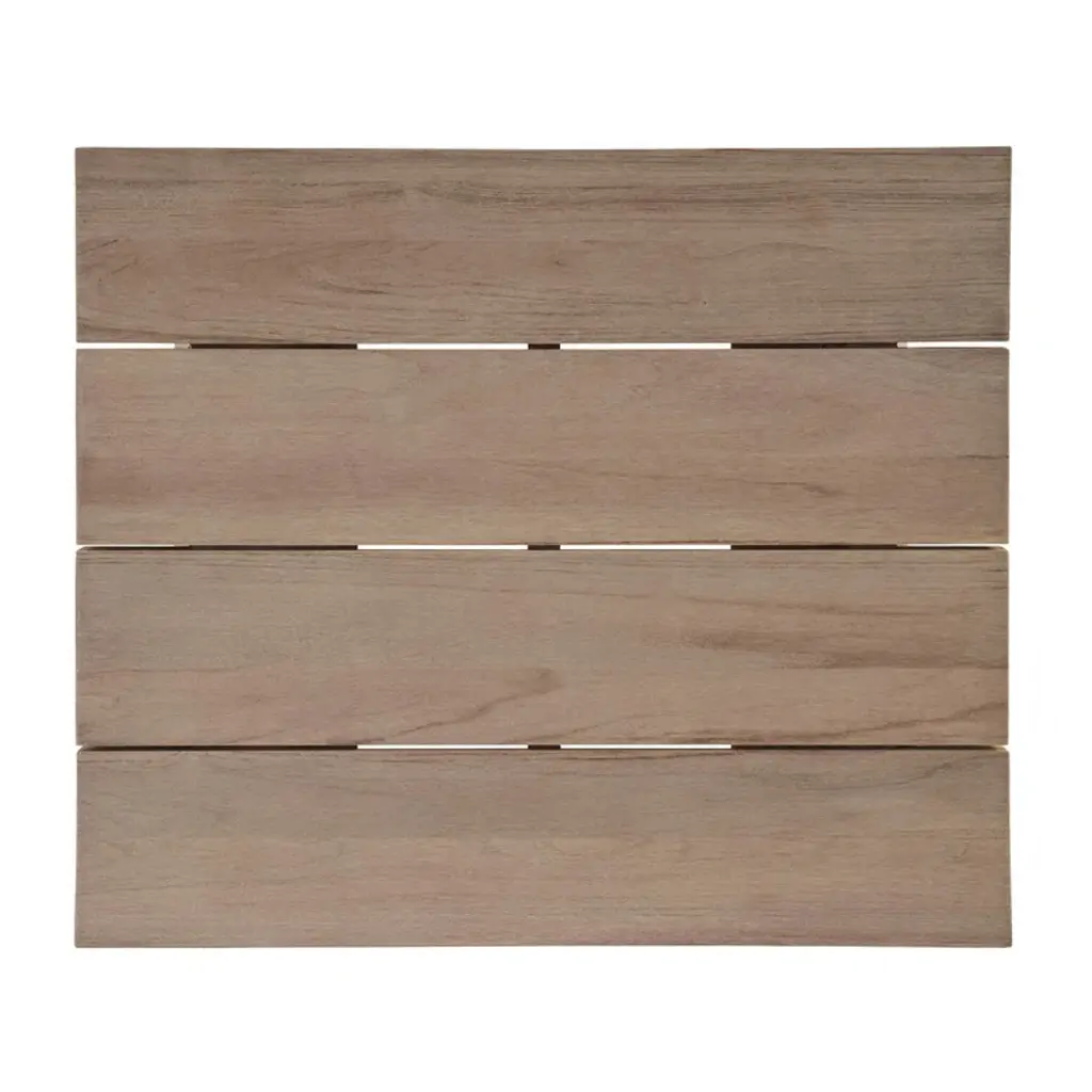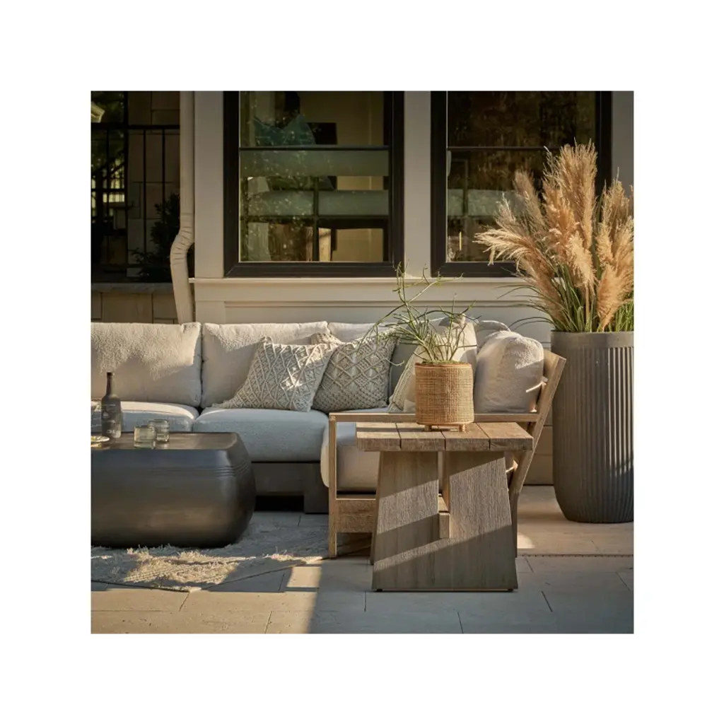 Complete your outdoor haven with the Saratoga Rectangular Angled End Table. This versatile piece complements the collection's sofa and seating options, offering a convenient surface for drinks, lamps or other decorative accents. The angled design adds a touch of modern flair, while the solid teak construction with a warm weathered finish ensures durability for years to come.