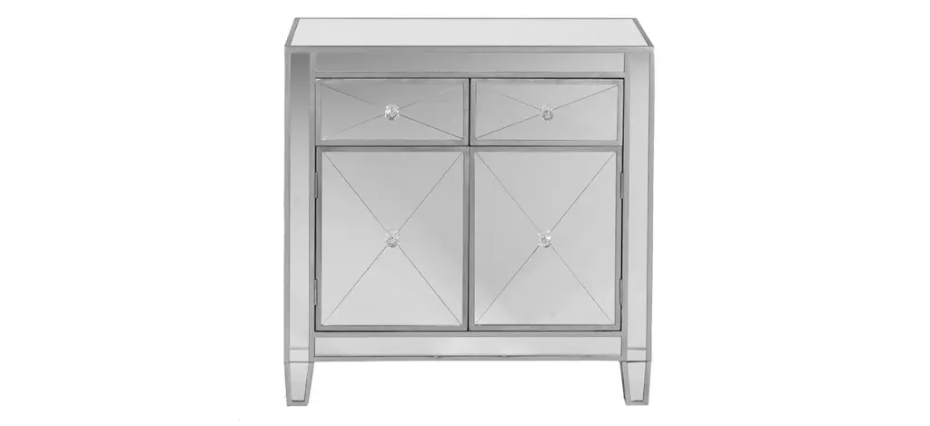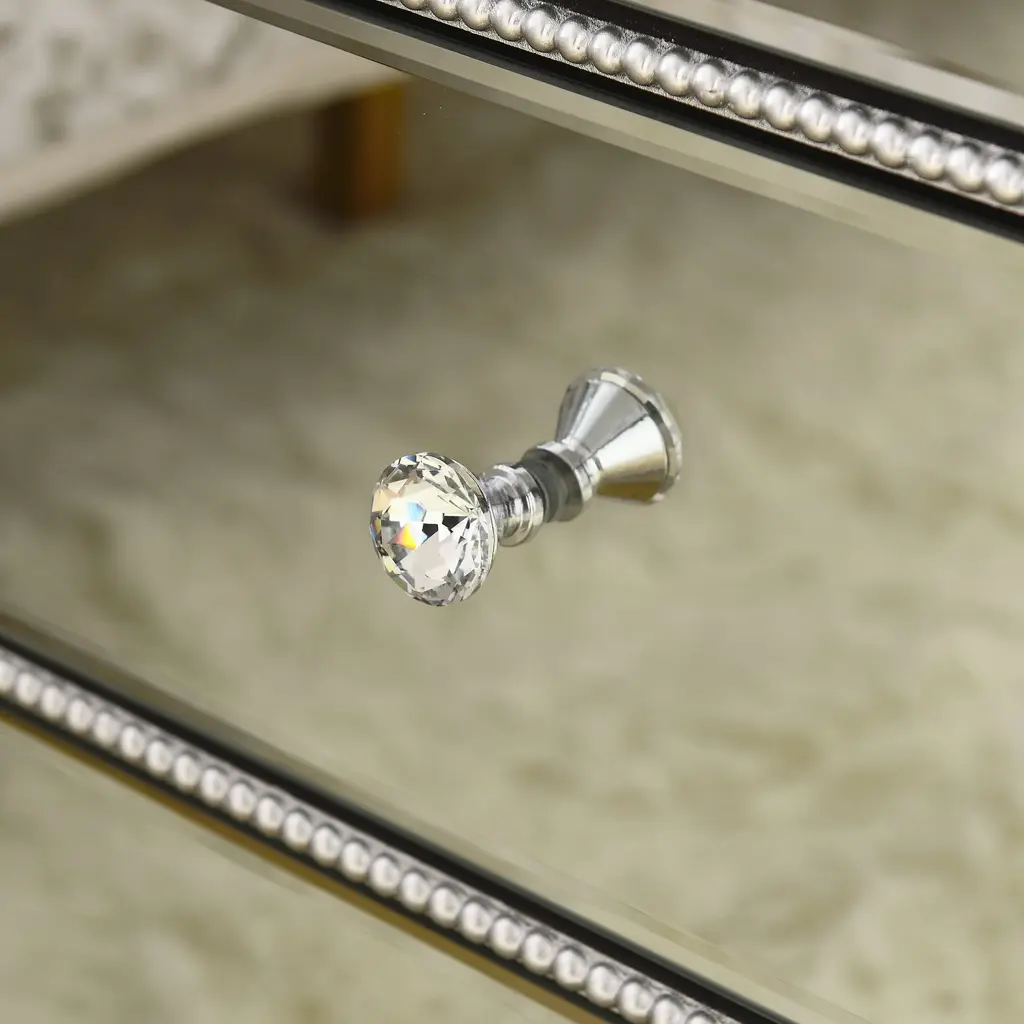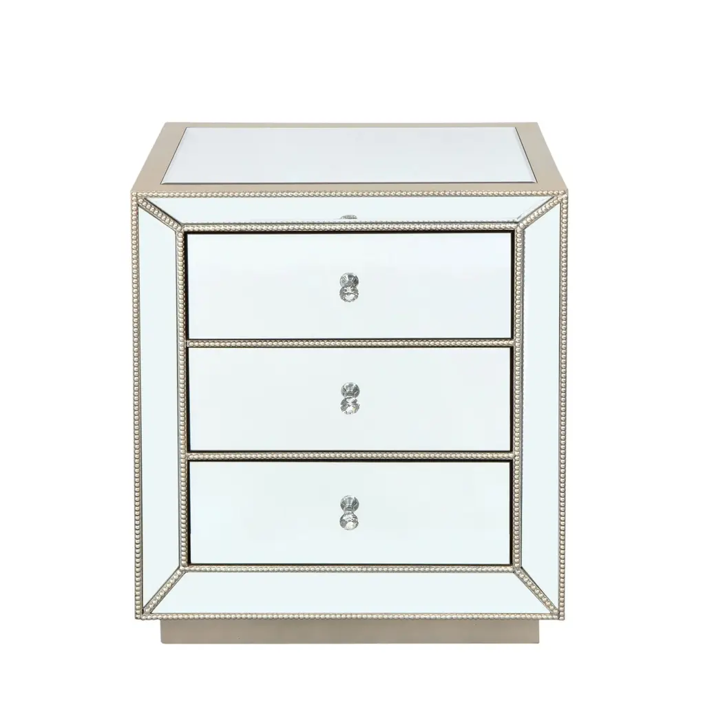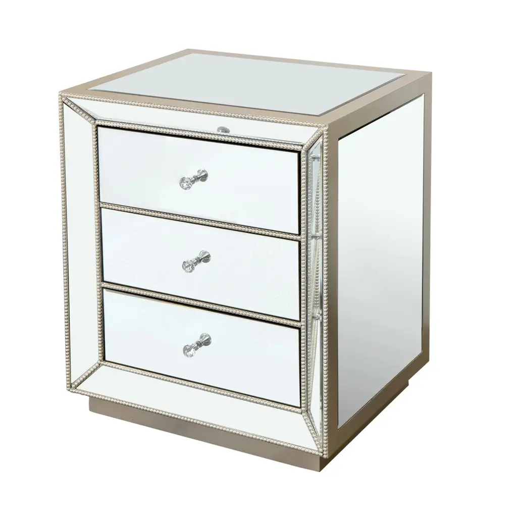 Enhance your space with the modern charm and functionality of this three-drawer cabinet. The shiny pearl finish with chain accents resembling pearls adds a touch of sophistication. Crafted from medium-density fiberboard and thick glass, it offers a durable, easy-to-clean, high-quality mirror surface. Three spacious drawers provide organized storage for books, electronics, jewelry, and more, making it ideal for bedrooms, living rooms, or offices. Use it as a bedside table for essentials or as a sofa side table for convenient access to snacks and drinks.