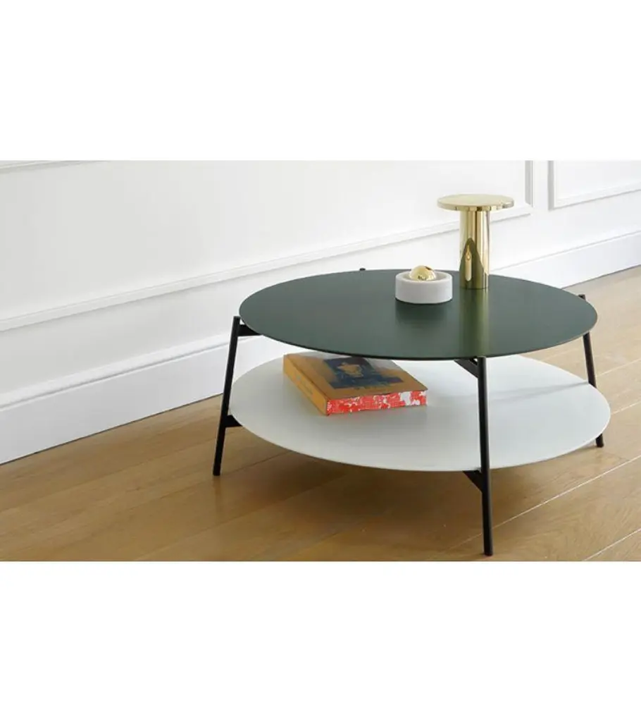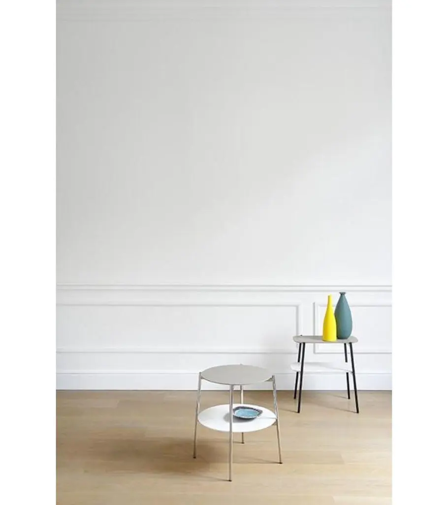 3 leg Shika side table by A+A CoorenMaterials: Base in chromed or black lacquered metal. Upper top in dark green, gray, or beige lacquered MDF Lower top in white lacquered MDFDimensions: Diameter 40 cm / 48 cm x Height 52 cmAlso available upholstered in black lacquered metal, and top in white or grey. The collection of Shika coffee tables and desks is designed by the talented couple Aki and Arnaud Cooren. It is refined and practical. The legs are in lacquered or chromed metal, with a double lacquered medium top. “Light, mobile, with slender legs, stable and space-saving, the Shika collection presents five pieces of furniture, pedestal table, side table, and coffee tables for indoor use. »A + A CoorenCOEDITION is a French publisher of high-end contemporary furniture created in 2014. Thanks to the diversity of the languages ??of its international designer's partners, COEDITION is an avant-garde brand, with the concern and the desire for sustainability. They are selected with great care. Among other things, solid woods and veneers are, depending on their origins and terms of supply. Our manufacture is only made in Italy, with the best craftsmen in the profession, committed to quality and the environment.Today 13 great designers are creating exclusive collections for COEDITION: Patricia Urquiola, Patrick Jouin, Luca Nichetto, Rodolfo Dordoni, Shin Azumi ”, Michael Anastassiades, Olivier Gagnère, Dominique Perrault and Gaelle Lauriot Prévost, Marco Zanuso Jr., Arnaud and Aki Cooren, and finally Alain Moatti.Our catalog offers furniture for the home, public places, reception areas, restaurants, hotels. Our raw materials are carefully selected, solid woods and veneers, according to their origins.A + A Cooren is a Franco-Japanese design studio based in Paris, formed by the couple Aki and Arnaud Cooren. The studio has been designing in the field of lighting, its specialty, but also in the world of products, furniture, and interior design since 1999. Characterized by a sober and poetic design whose roots are clearly Japanese and Nordic, the studio seeks, in each of its projects, to subtly reintegrate nature into everyday objects, as well as into interior architecture. A + A Cooren designs both industrial and artisanal objects, with the guiding principle of a constant search for simplicity of implementation for the manufacturer and ease of use for the final recipient. For A + A Cooren, the creation of a good product requires good teamwork between the manufacturer/craftsman and the designers, supported by high standards in terms of execution. Their creations are edited by Artemide, CFOC, Metalarte, La Redoute, Tronconi, Vertigo Bird, Yamagiwa, etc. They notably designed the Shiseido Europe showroom in Paris (2002), the Hair research center for L'Oréal in St. Ouen (2011), and the redevelopment of the Sèvres - Cité de la Céramique gallery in Paris (2013).