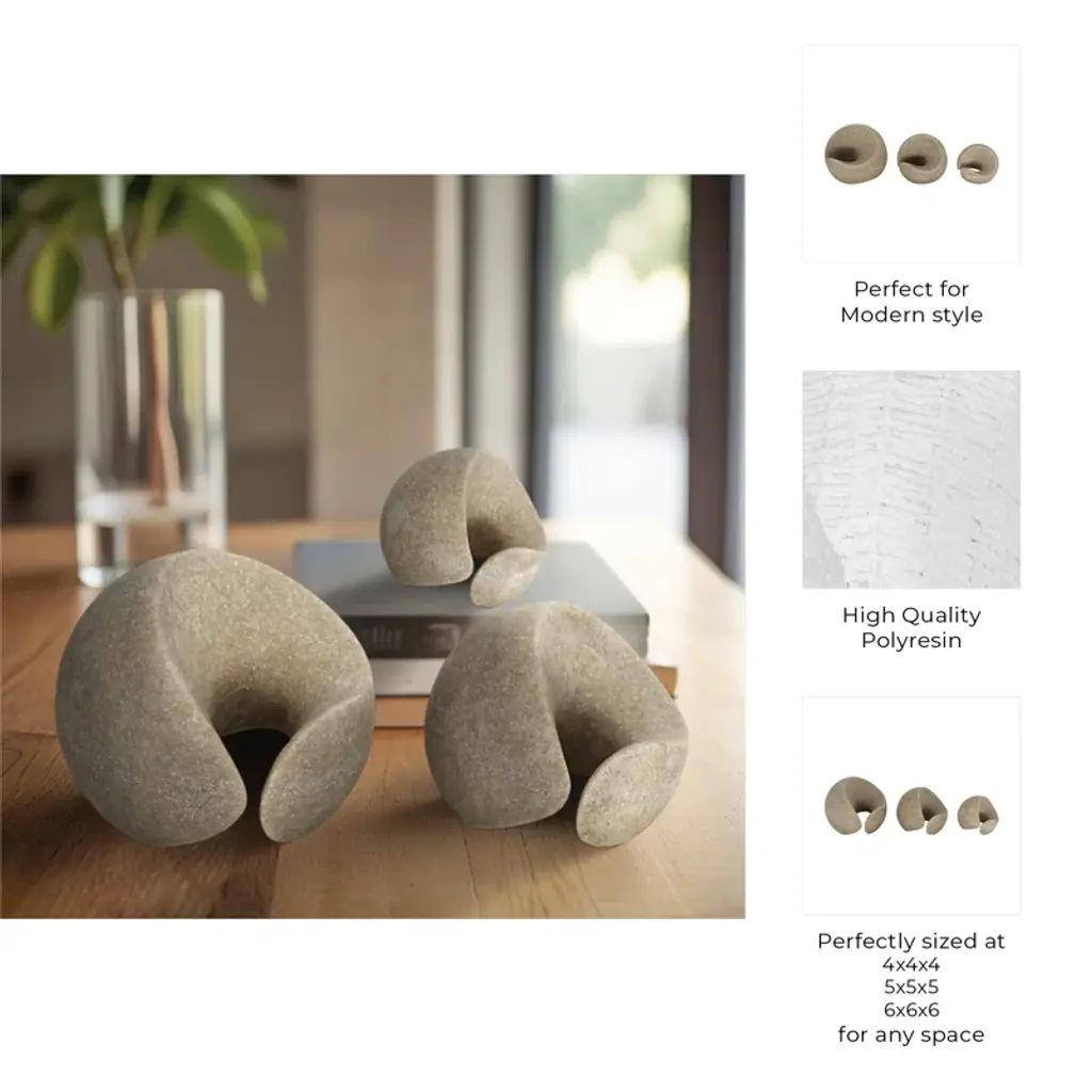 3-Pieces 4/5/6" Flowood Brown Quartz Resin Spheres (Set Of 3)