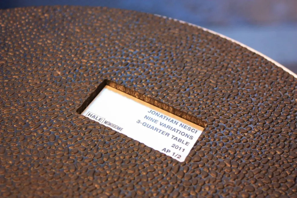 Minimalist side table in .25" thick in aluminum plate, part of the "Nine Variation" series debuted at Mondo Cane Gallery in 2011. Underside has recessed, cut rubber sheet with inset label showing edition number. From the edition of 50.
