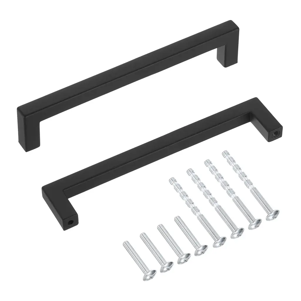 Description[Material] - Our drawer bar pulls are made of zinc alloy, they are solid tube structure, which is more robust, durable and corrosion-resistant, easy to use and has a long service life.[Slim Square Design] - The cabinets handle with a slim square appearance, its simple and modern design is suited for farmhouse, vintage, traditional and transitional styles. These handles will give your cabinets a clean and tidy look, easily enhancing the elegance of your cabinets doors and drawers.[Deep Hole Thread Design] - These square cabinets pulls have a thick solid base, which is not easy to break and deform. The deep threads allow the screws to bite more tightly, making the handle and the cabinets door heel fit together and not easy to fall off, making it easy to pull out the drawer.[Wide Application] - The Kitchen Cabinets Handles are great furniture hardware accessories, suitable for different styles of furniture and rooms. Such as kitchen cabinets, drawers, cupboards, wardrobes, bedside tables, etc.SpecificationMaterial: Zinc AlloyScrew-hole Center: 5 1/16 inch(128mm)Overall Length: 5 3/8 inch(137mm)Width: 3/8 inch(9mm)Height: 1 1/8 inch(28mm)Hole Thread Specifications: M4Color: BlackPackage Includes30pcs x Square Drawer Handles60pcs x 25mm Screws60pcs x 45mm Screws