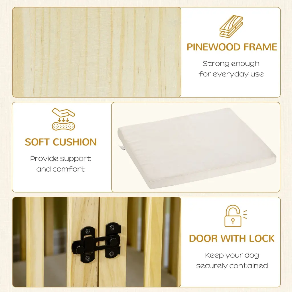 37.5" Wooden Dog Crate End Table With Built-In Food Bowl, Cushion & Double Doors, Indoor Pet Furniture - Wood - 37.5" L X 22.75" W X 27.5" H