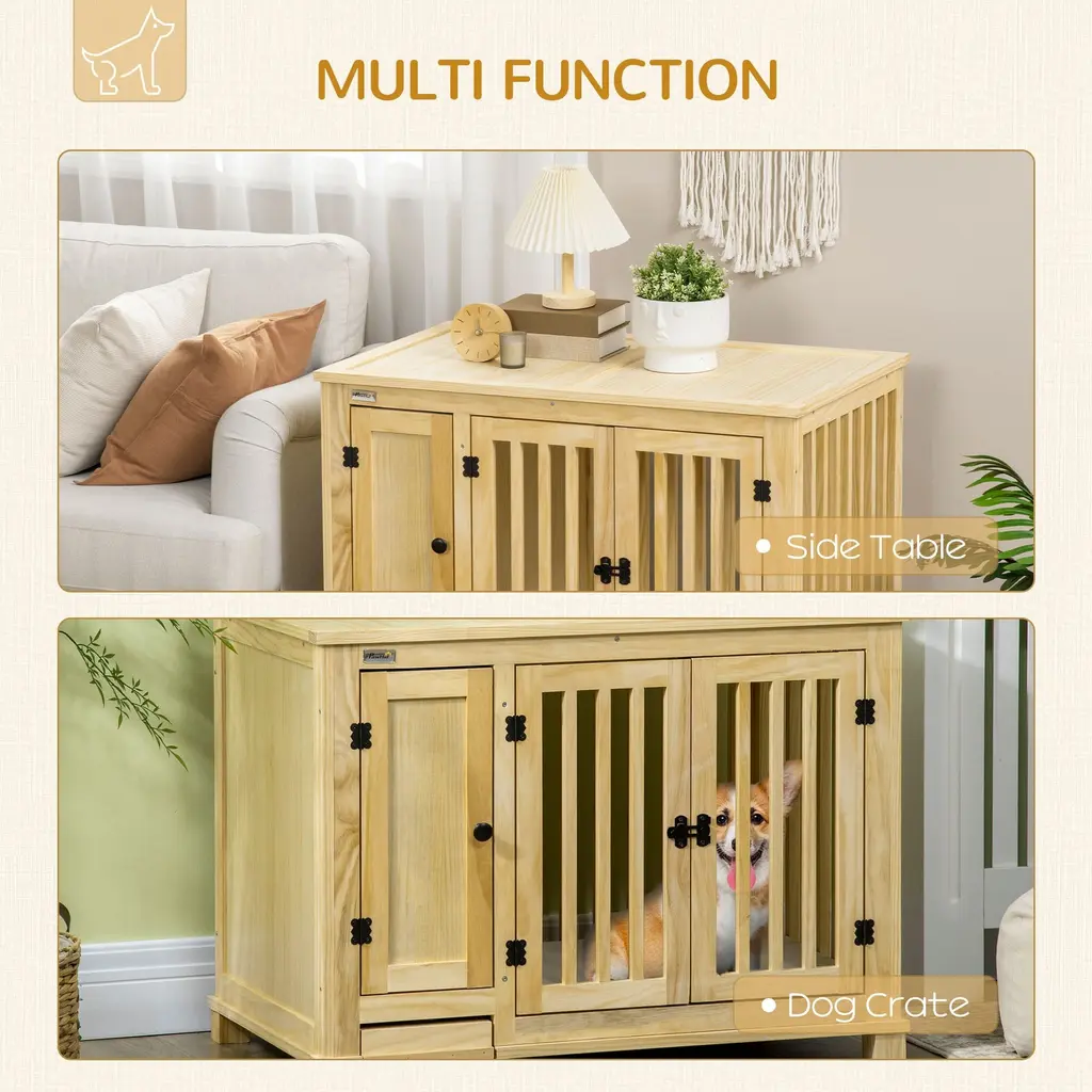 Product Introduction This 37.5" wood dog crate furniture combines practicality with comfort, providing a safe and stylish space for your small dog. Featuring a hidden food bowl drawer, cushioned interior, and robust wooden build, it serves as a decorative end table while providing a functional pet space.Product FeaturesSpecificationsNote: Assembly required. Verify dimensions to ensure the crate meets your pet's needs.