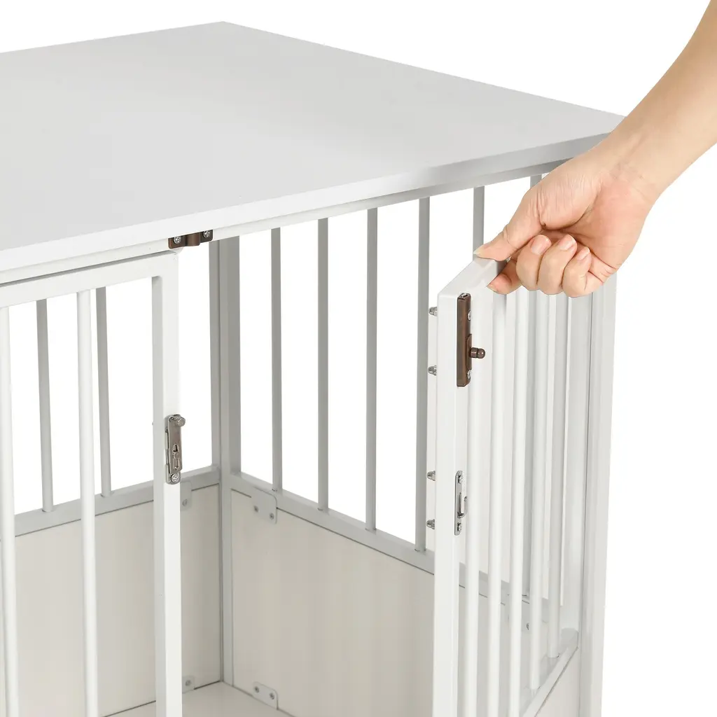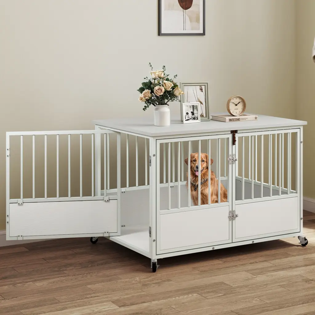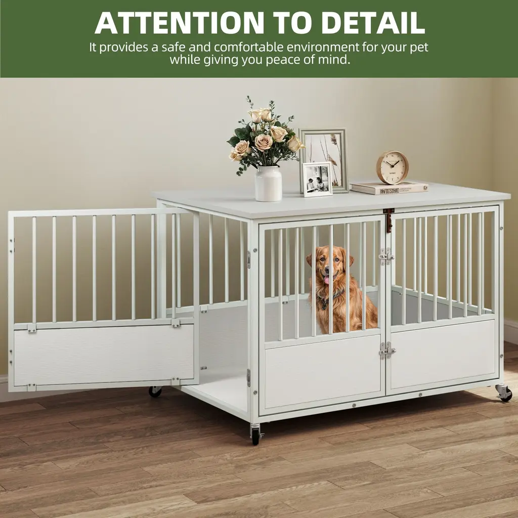 38"/43" Dog Crate Furniture Cage Table With Wheels And Double Doors - White - 43"