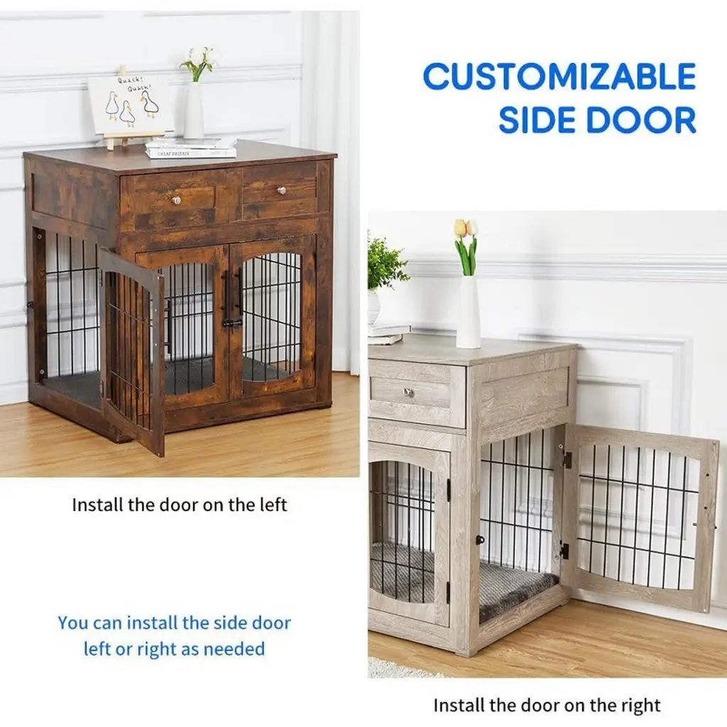 Large Dog Crate Furniture With 3 Doors, 2 Drawers & Cushion - Wooden House Kennel for Medium/Large Dogs Up to 130 lbs - 39.4" Indoor End Table