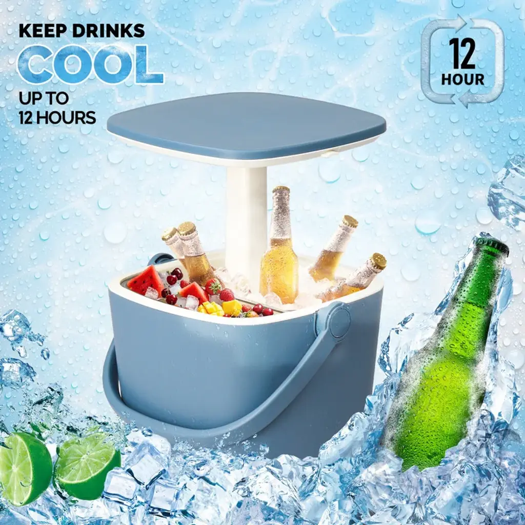 4 Gallon Patio Side Cooler Table Blue Plastic - Blue