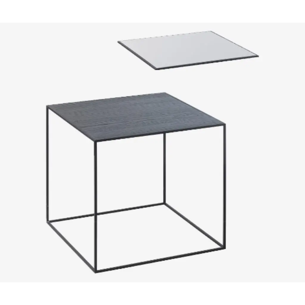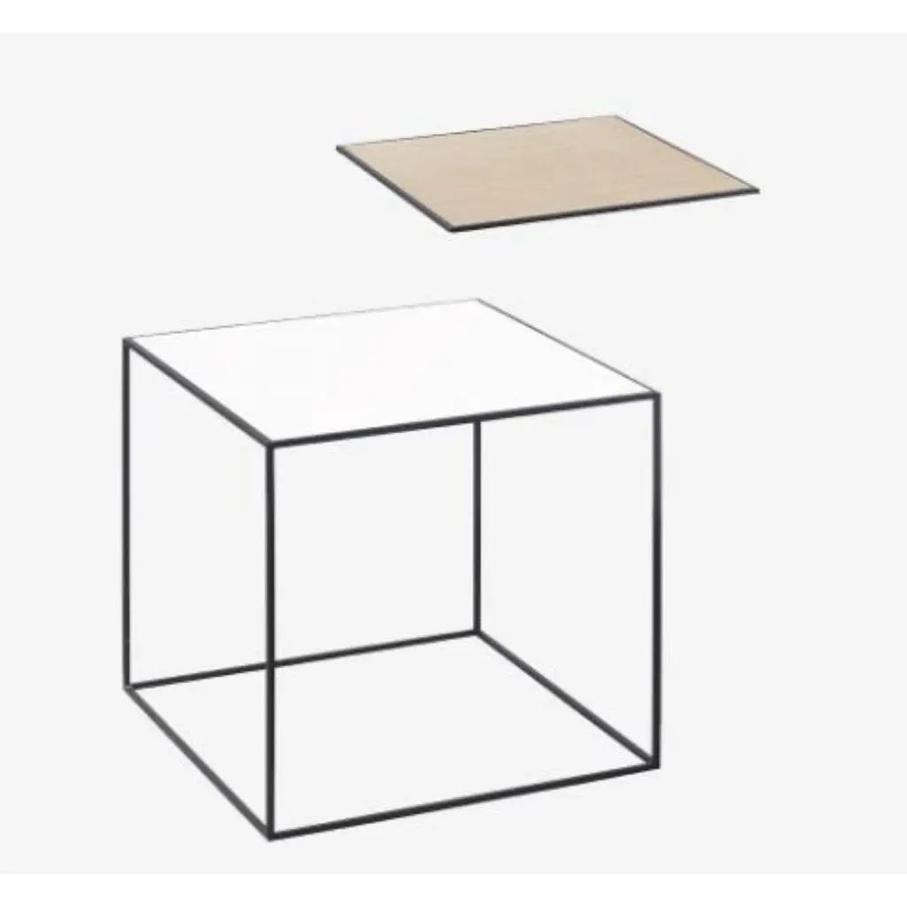 49 Oak brass twin table by Lassen.Dimensions: w 49 x d 49 x h 0.5 cm. Materials: Finér, Melamin, Melamin, Melamine, metal, veneer, oak, brass.Also available in different colors and dimensions. With an uncomplicated simplicity and a fond reference to sharp, cubist shapes, the Twin table is a new classic in contemporary interior design. Twin’s distinctive reversible top encourages both individuality and flexibility. Emphasise the table’s unique simplicity by placing a Twin table alone as a night table or create a dynamic effect by combining different surfaces side by side as coffee tables or side tables in the living area.By Lassen is a Danish design brand focused on iconic designs created by Mogens and Flemming Lassen, founded by Lassens’ relatives in 2008. Brothers Mogens (1901-1987) and Flemming (1902-1984) Lassen are known as two of Denmark’s greatest architects and designers. Both were renowned pioneers of Danish functionalism and modernist architecture, honoured with numerous prestigious medals and awards. Headed by Mogens Lassen’s grandson Søren Lassen, By Lassen carries on the brothers’ design philosophy by manufacturing their iconic designs as well as products by other designers that complement the Lassen’s functionalist style. The company’s mission is to continue the tradition of timelessness, functionality and quality, and to introduce the Lassen’s design heritage to new generations.
