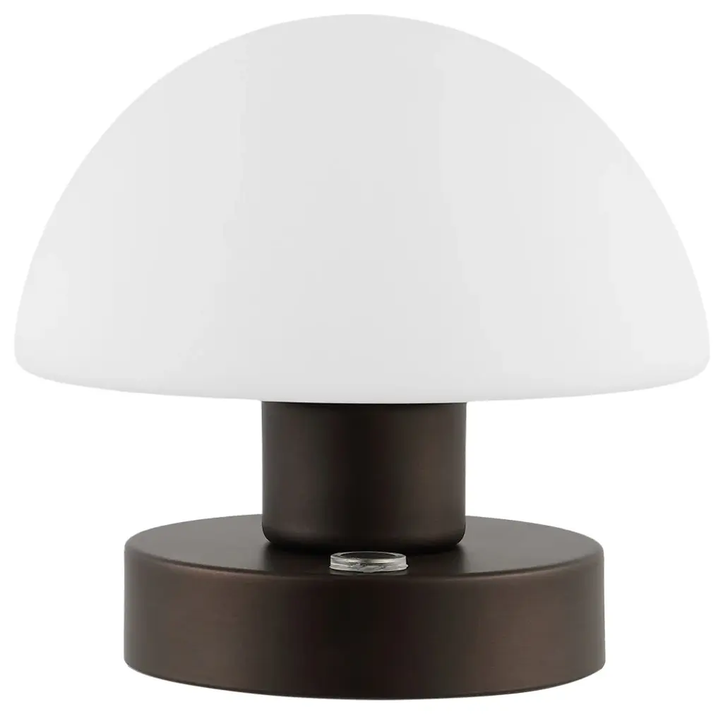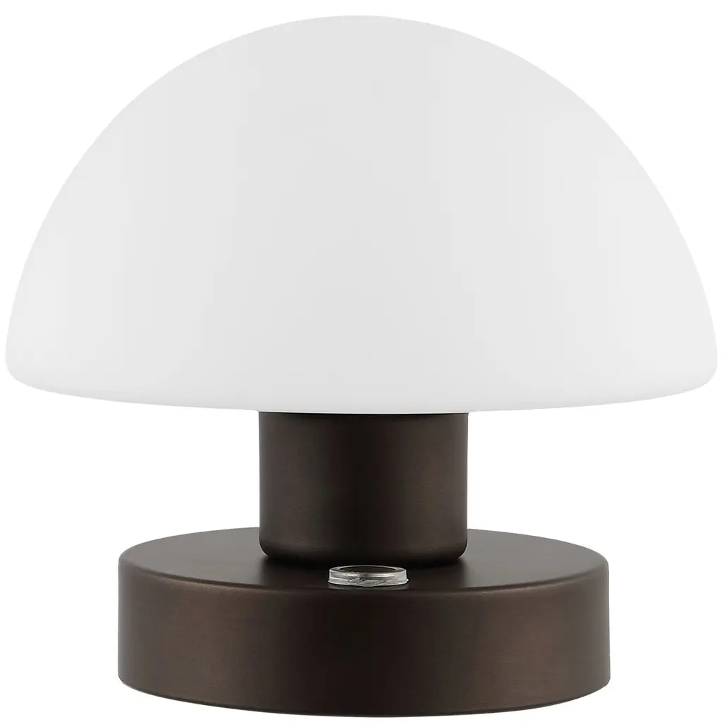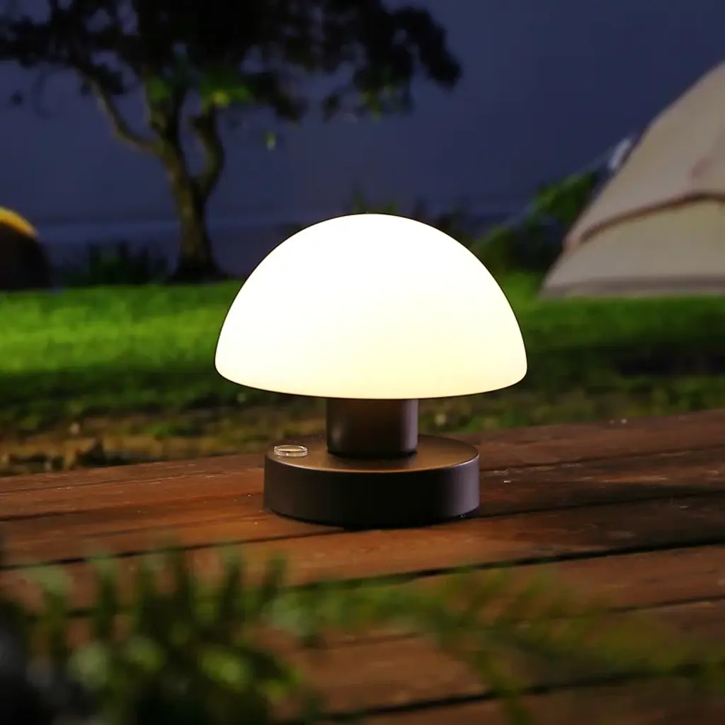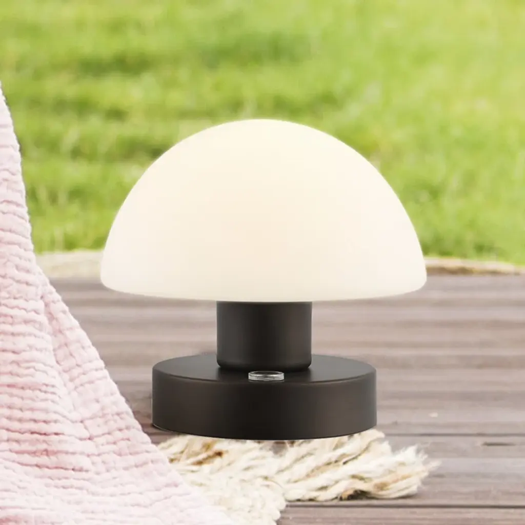 Minimalist mushroom. A pared-back take on retro lighting styles, this desk lamp showcases a low-profile silhouette topped by a frosted glass dome shade. Cordless + rechargeable, it’s ready to light up your workspace, bedside table, or anywhere the evening takes you. Plus, this lamp is dimmable so you can set just the right mood.