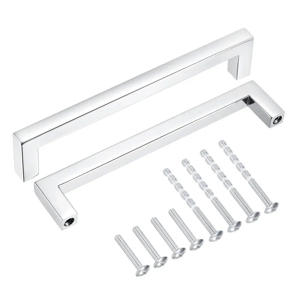 5Pack Square Bar Drawer Handle, Zinc Alloy Kitchen Cabinets Pull - Silver - 5 1/16 Inch