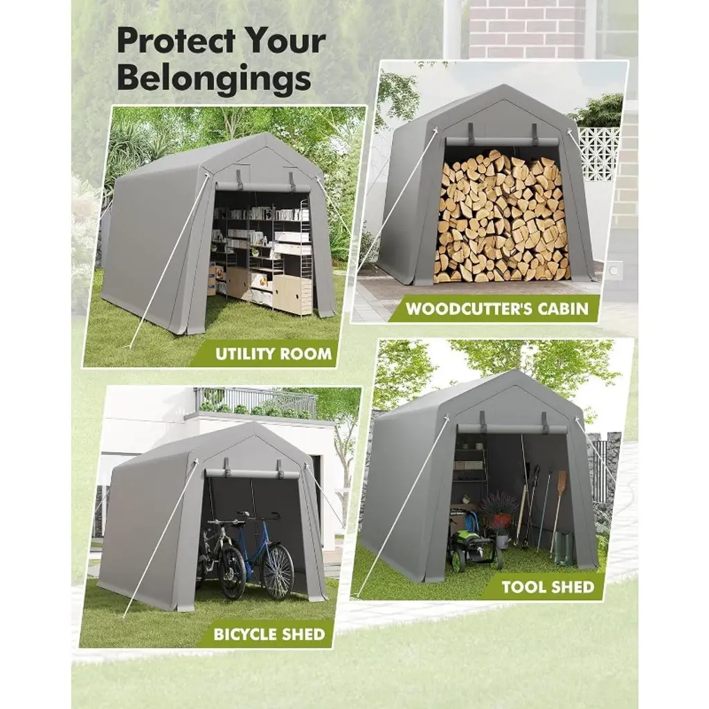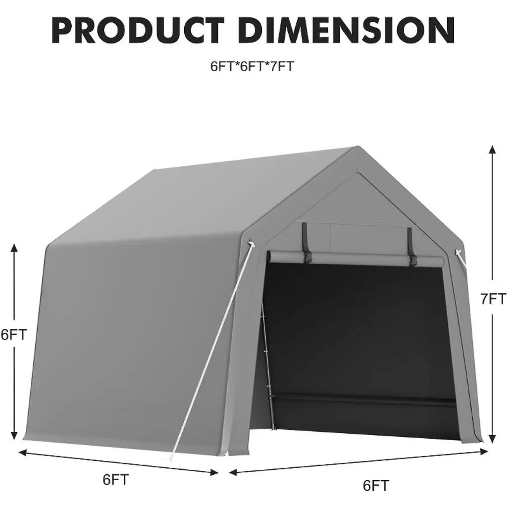6X6 Ft Outdoor Storage Shelter Shed, Portable Garage With Rolled Up Door, Heavy Duty Motorcycle Storage Tents For Outside, Anti-uv Waterproof Carport