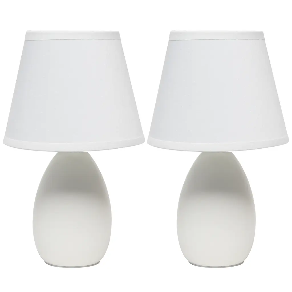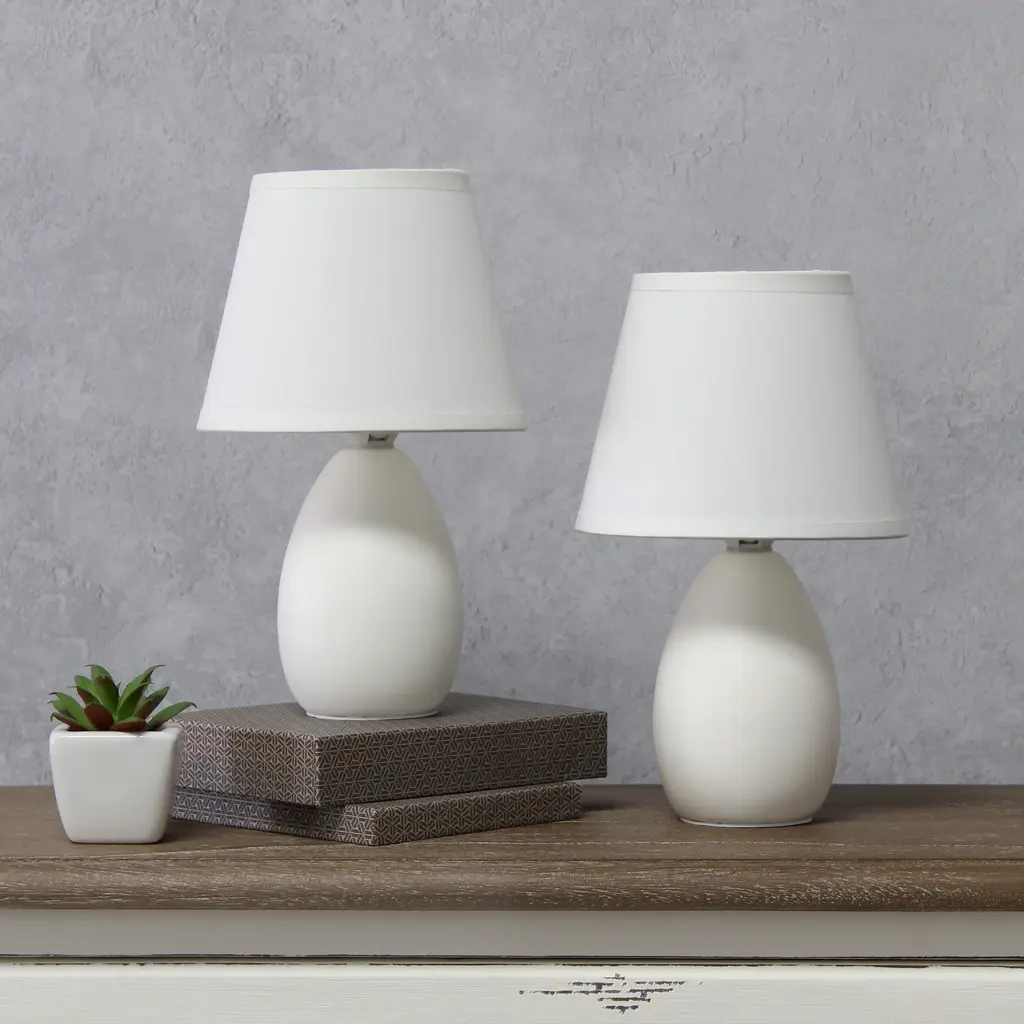 A petite table lamp set, each made primarily of ceramic with its oblong base shape sits beneath a matching colored tapered fabric shade for an overall effortlessly styled lamp suited for both your décor and lighting needs. A number of color options are available in this style, to compliment your decor just right.Features: