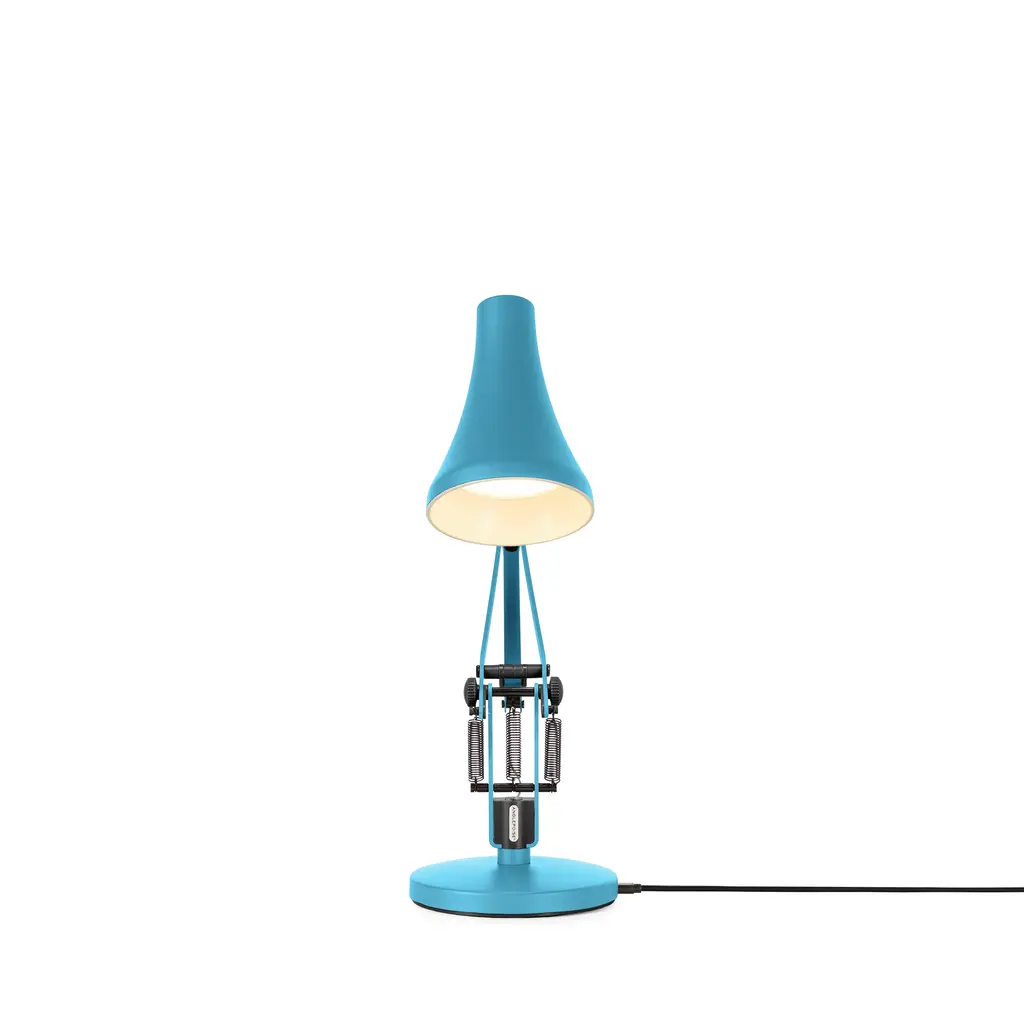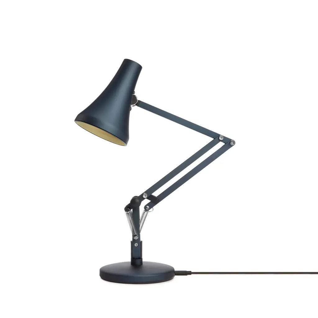 Half-size Anglepoise, full reach: the 90 Mini Mini arcs 20.5″ or 52.1 cm from a 4.7″ or 11.9 cm cast-iron base, giving tight desks and bedside tables the focused light they usually lose. Born from the 1970s Model 90, this pint-sized LED keeps the trademark spring-balanced arm while swapping mains wiring for a USB-powered, dimmable module rated to glow for 20 000 hours. Tap the switch on the 3.6″ or 9.1 cm shade to cycle through brightness; the satin-painted aluminum stem holds its angle whether you’re sketching, reading, or dialing down to night-light mode. A 59″ or 149.9 cm cable and plug-in adapter are included, so power is as close as any laptop port. Choose Biscuit Beige, Steel Blue, Carbon Black, Warm Silver, or Signal Red to suit your setup—each finish pairs chrome hardware with a neat micro-USB inlet at the base. Slip the lamp into a carry-on, park it on a windowsill, or keep it permanently perched by the keyboard; wherever space is scarce, the 90 Mini Mini delivers classic Anglepoise poise without the footprint.