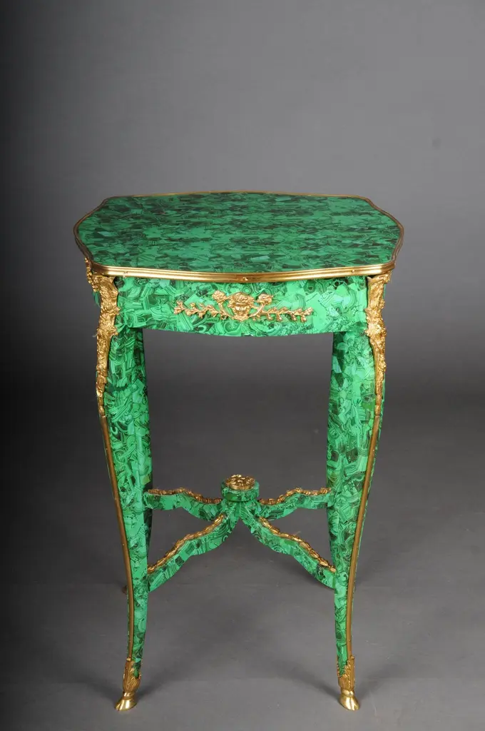 A Impressive Malachite Side Table In The Louis Xv.