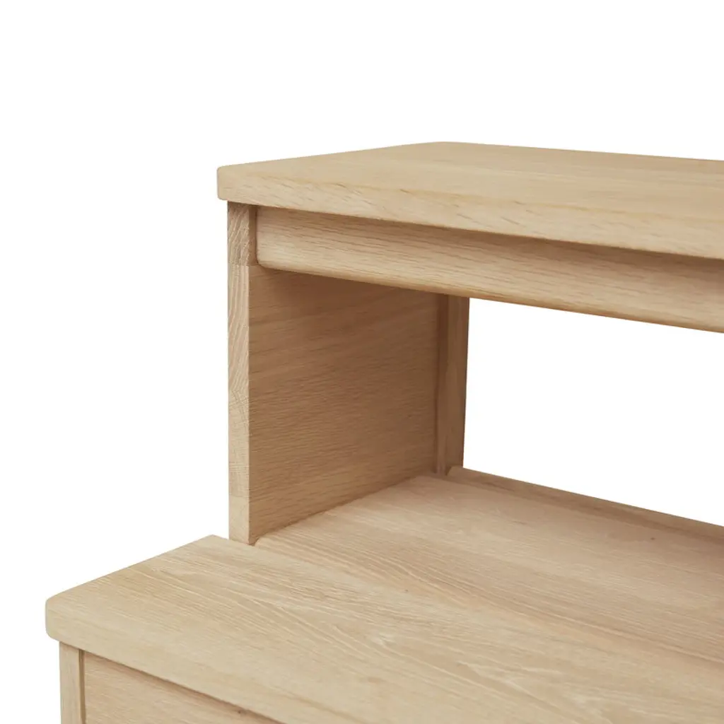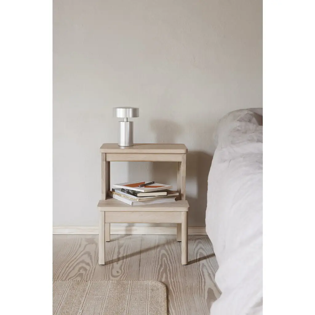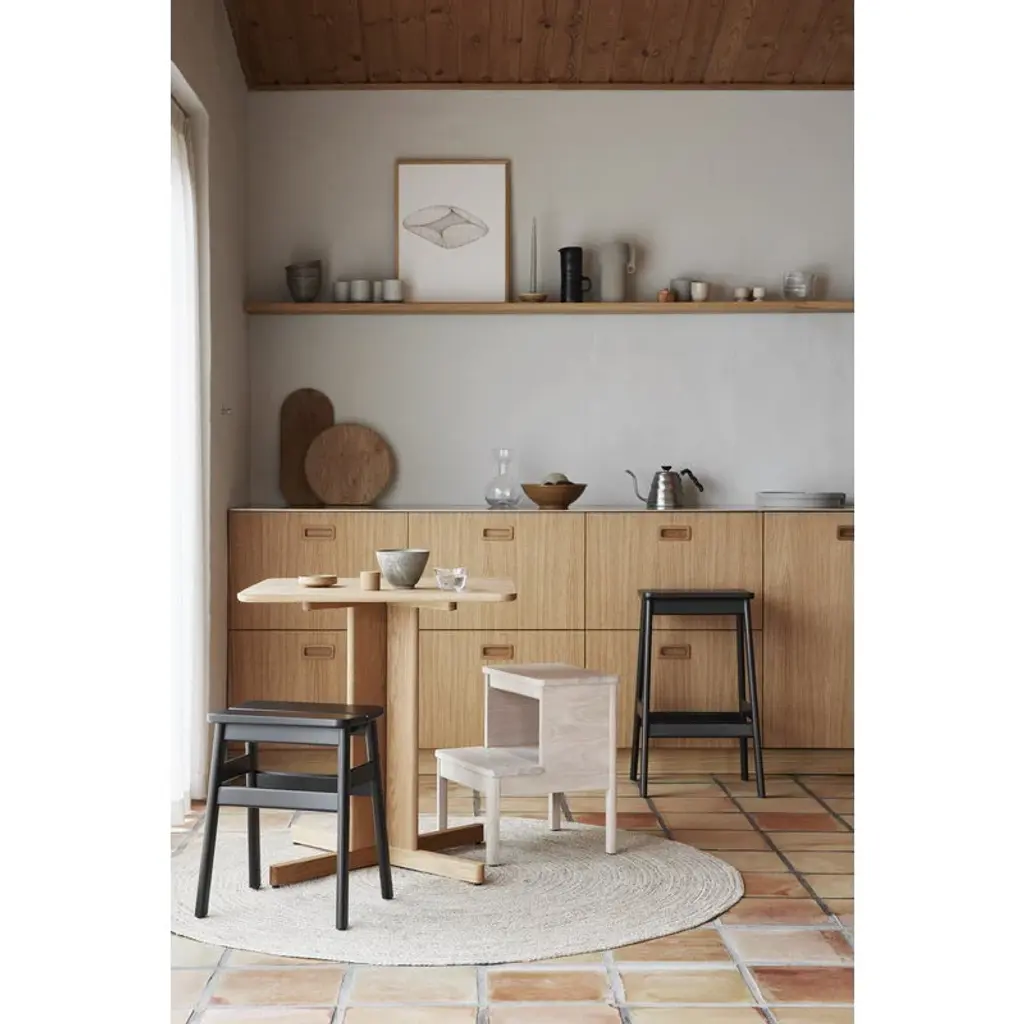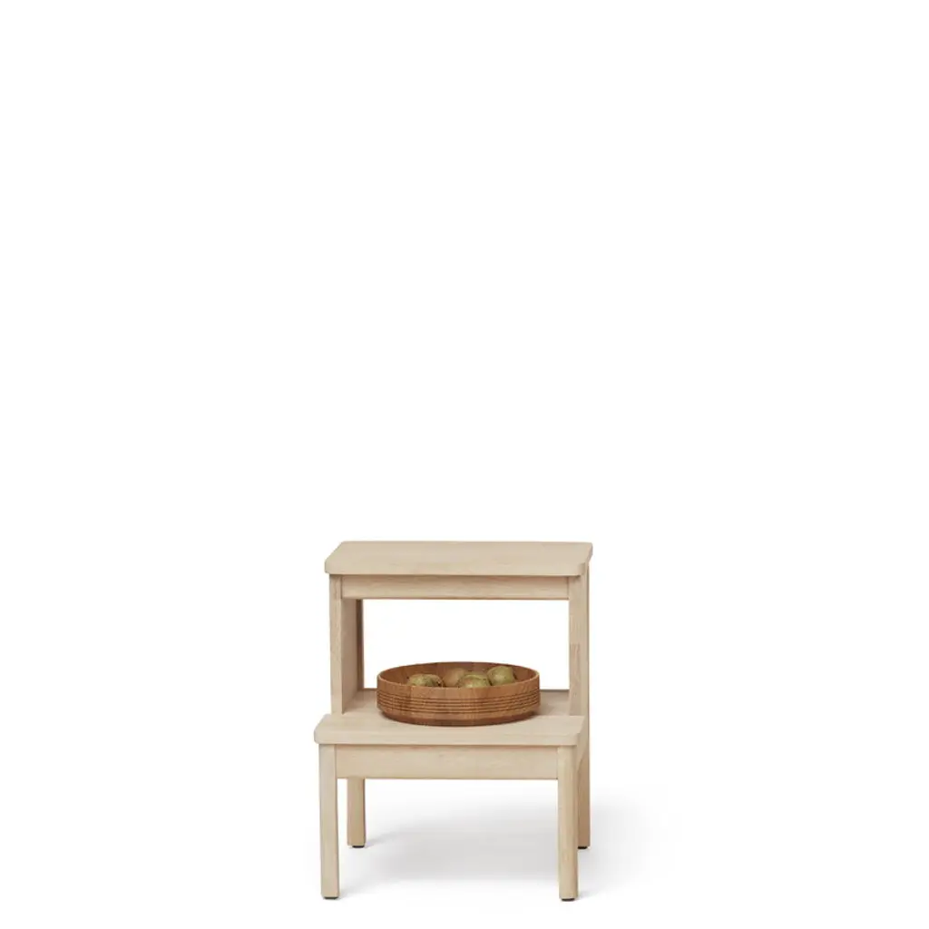 A Line step ladder is a versatile helper for different rooms in your home. The ladder is designed by Herman Studio and is part of Form & Refine's A Line collection that pays respect to Danish woodworking traditions with its solid wood furniture, organic expression and timeless elegance. Made from oak, the A Line step ladder has two sturdy steps that also function as seats or tabletops, depending on where and how you decide to use it. Thanks to its clever design, the step ladder adapts smoothly to many kinds of purposes – use it as a ladder or extra seat in the kitchen, nightstand in the bedroom or practical side table in the kids' room or hallway.