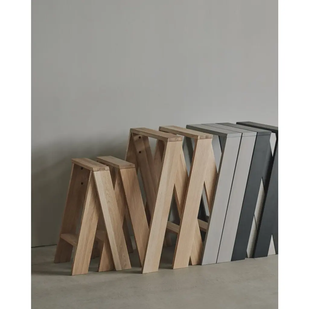 Ishinomaki Laboratory’s AA high stool is a clever and minimalist wooden piece made up of two triangular components. Shaped like the letter A and resembling trestle legs, each part can be used individually as a small stool or combined to create a wider, more stable seat. You can also line them up to form a narrow, high bench or use them as a simple side table. Versatile and adaptable, the AA high stools are an ideal solution for small spaces or as extra seating when guests arrive. Standing 27.56 in (70 cm) tall, the bar stools are crafted from Japanese hardwood with distinctive grain patterns, and finished with a protective laminate surface that resists stains and knocks.