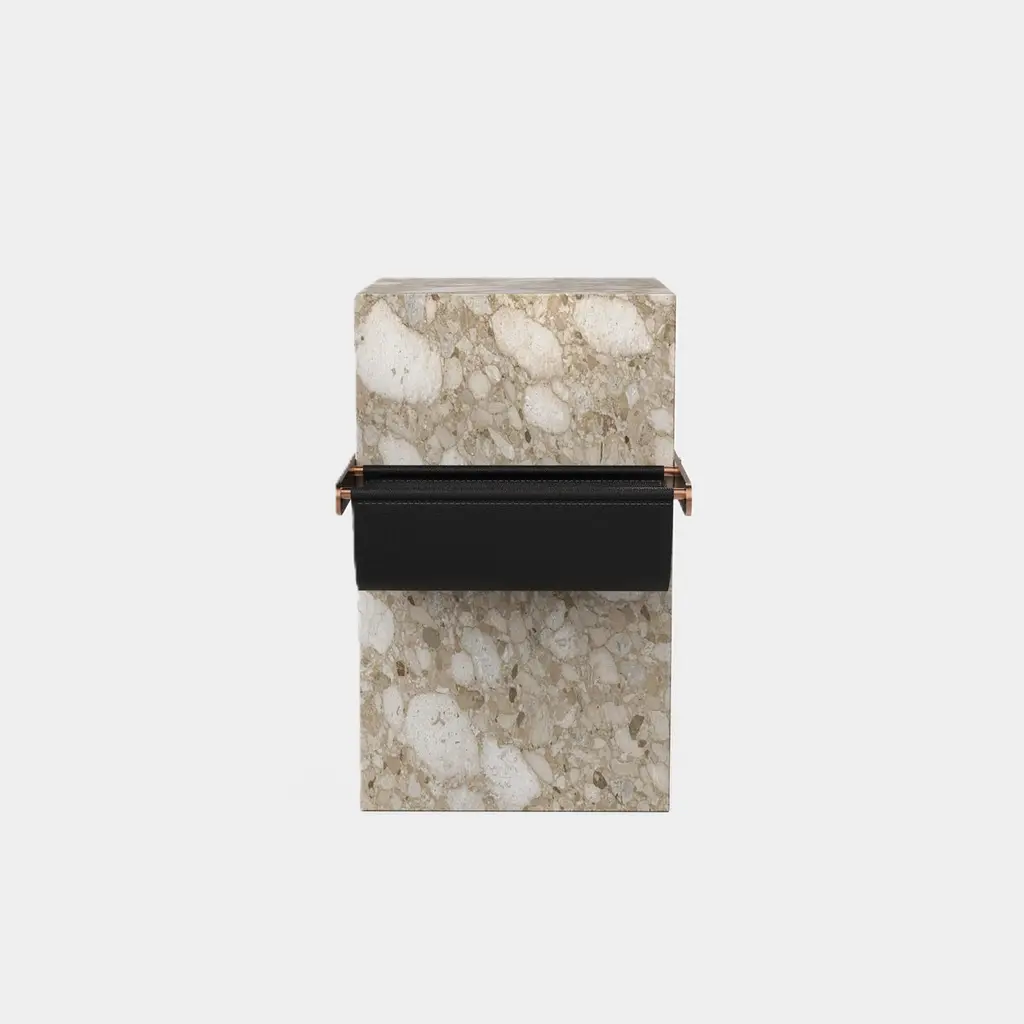 Aarhaus - Marble Side-Table With Storage Pouch - Beige Breccia