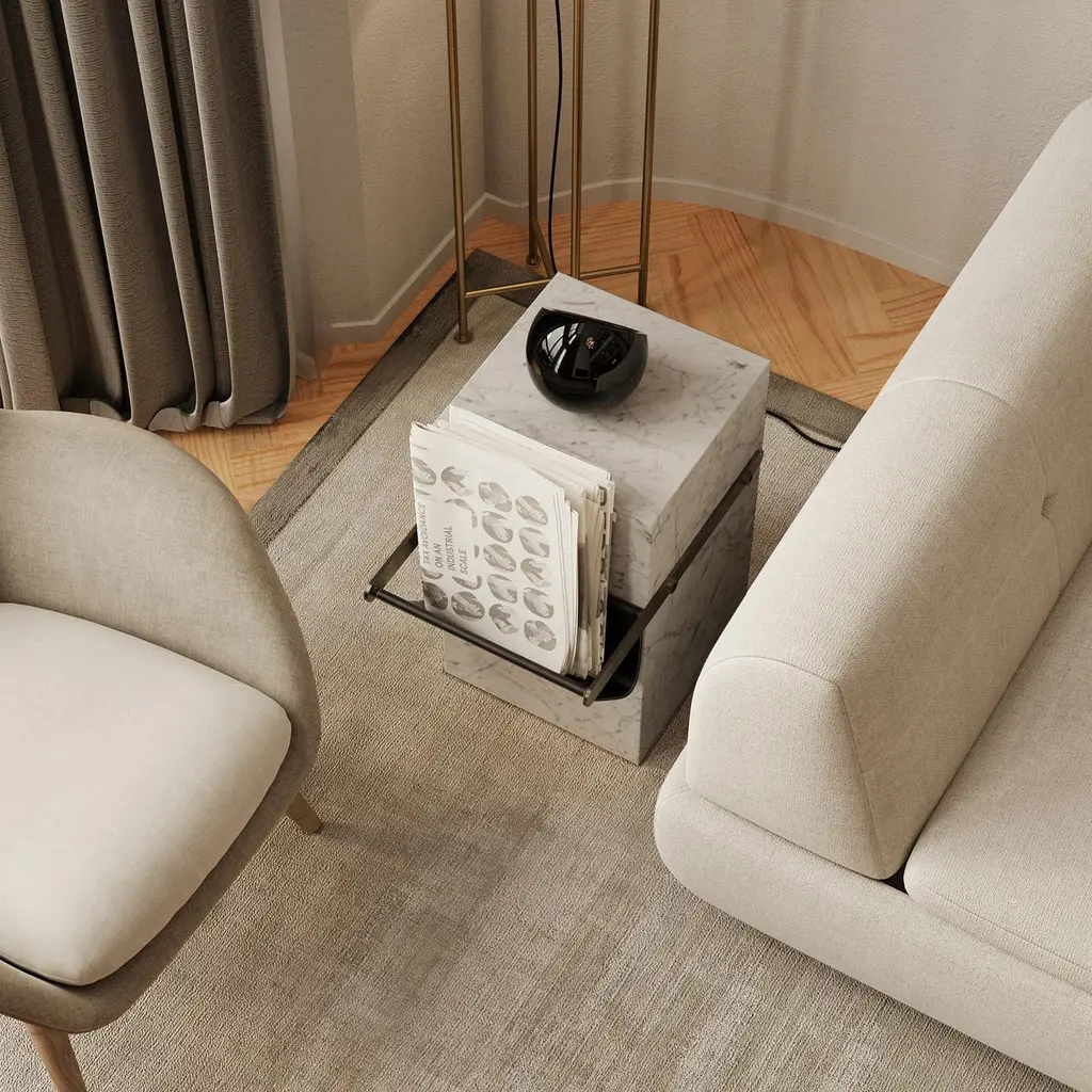 Aarhaus - Marble Side-Table With Storage Pouch - White Carrara
