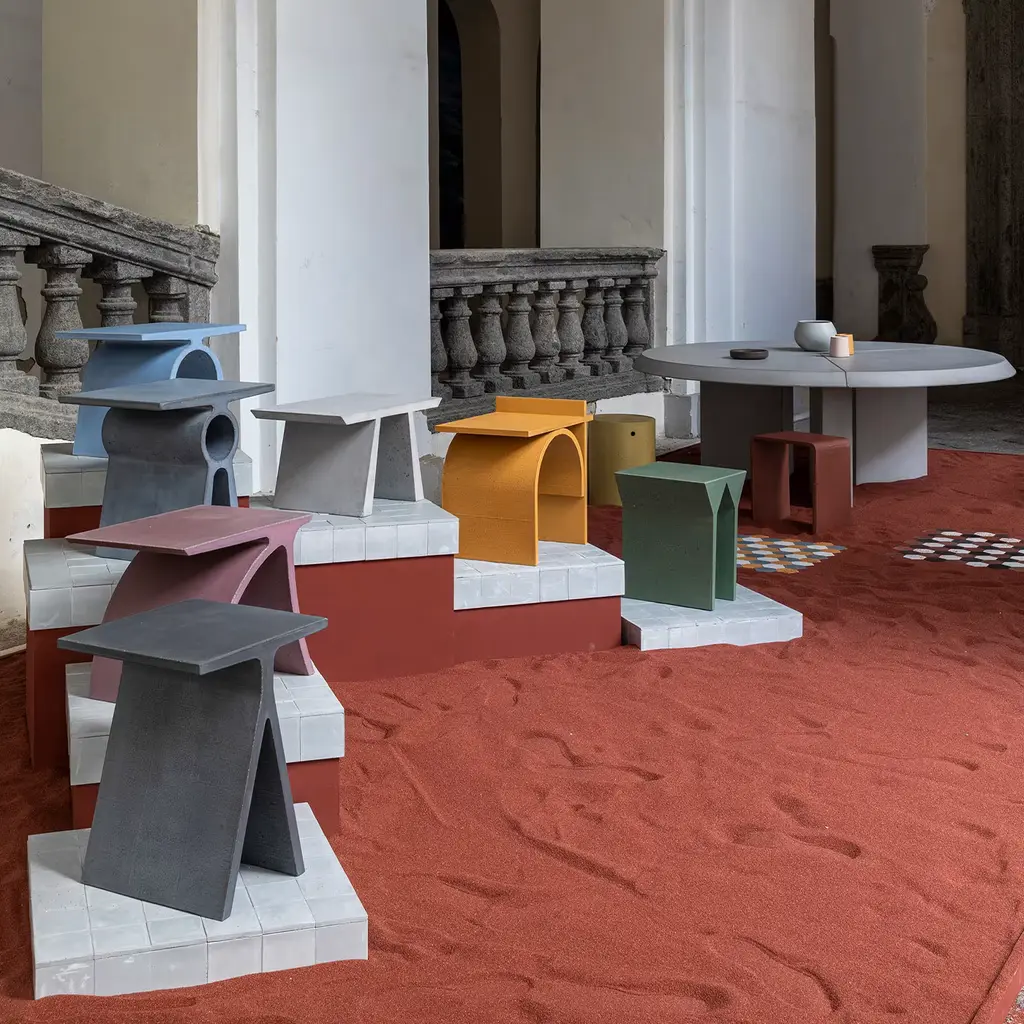 Side Table F is the new addition to the Abecedario Collection. A new graphene that continues with the drafting of a concrete alphabet. Each coffee table is made through the extrusion of a two-dimensional shape inside which the cement is poured. Each unique and recognizable "sign" materializes in a piece of furniture. The piece is available in different colors: silver, brick, fir, cream, dark chocolate, powder, ultramarine, ink, and ardesia. Please, ask the Concierge for further details.