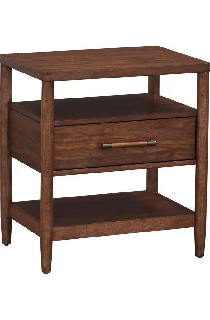 The Edie Drawer End Table from the Abode collection exemplifies sophisticated architectural design through its ingenious composition of form and function. This striking piece features a distinctive shaped overhang created by thoughtfully configured end panels, resulting in a sleek, clean silhouette that immediately draws attention. The eye is naturally guided to the exquisite cove shape where the solid wood elements converge—an artful detail that showcases exceptional craftsmanship. Beyond its aesthetic appeal, this versatile end table offers practical storage solutions with a spacious shelf for displaying treasured objects and a convenient lower drawer for concealing everyday essentials.