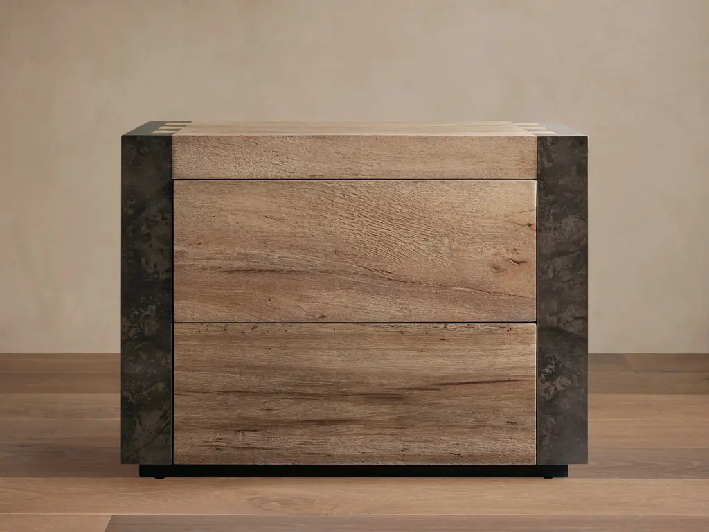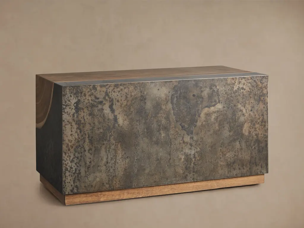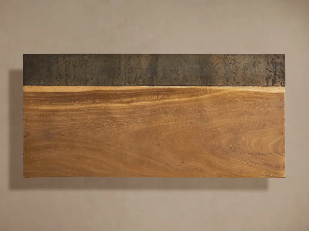 Made from panels of steel left out in the elements to age, Acacius is one of our signature collections handcrafted by a family of imaginative artists in Mexico. After developing a patina of stains and speckles, each panel is molded around the organic silhouette of reclaimed yukas, creating a finished piece as unique as the trees themselves.