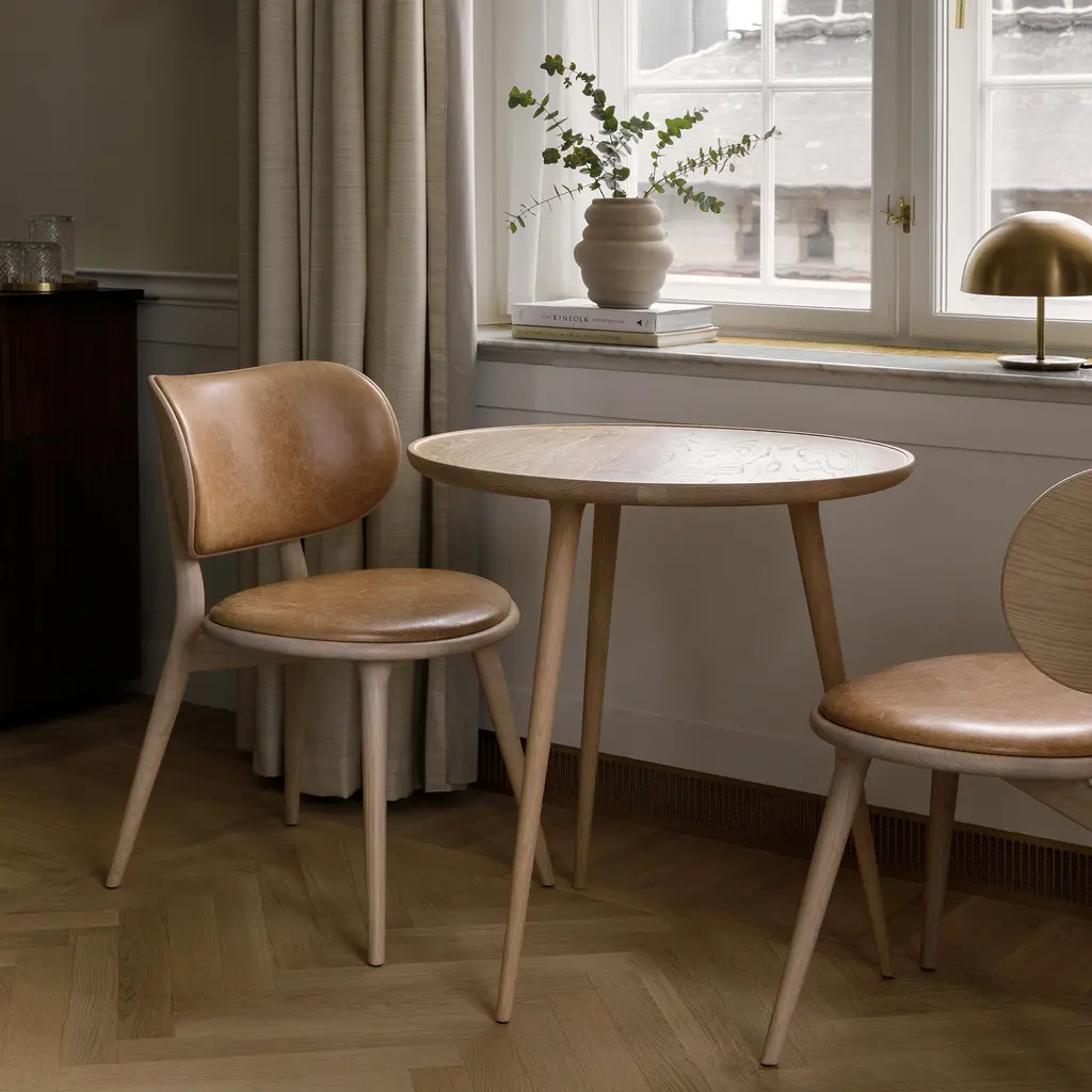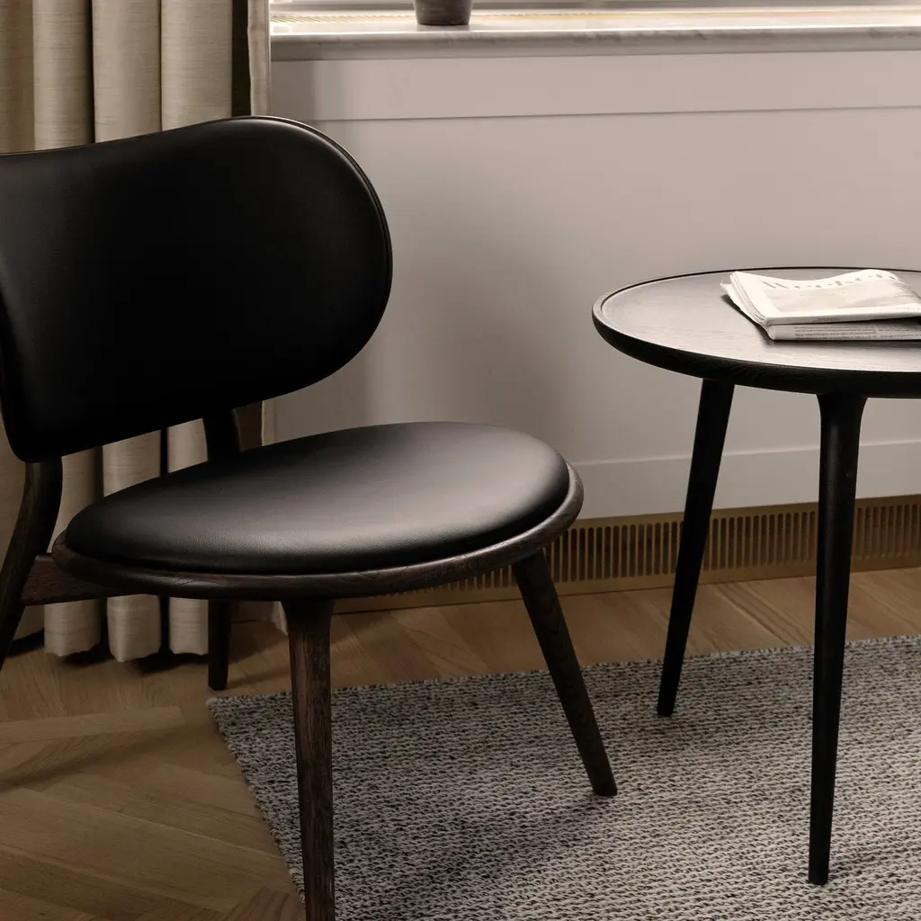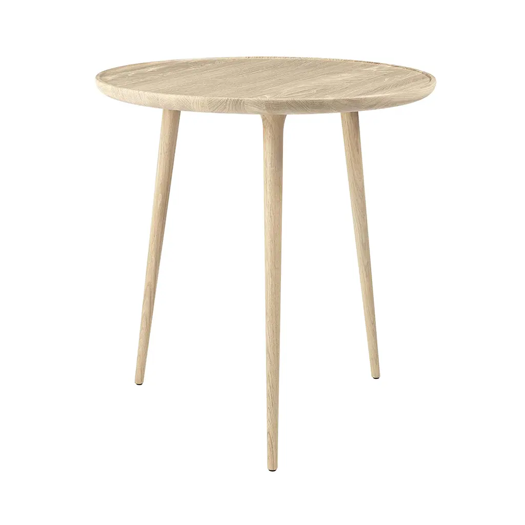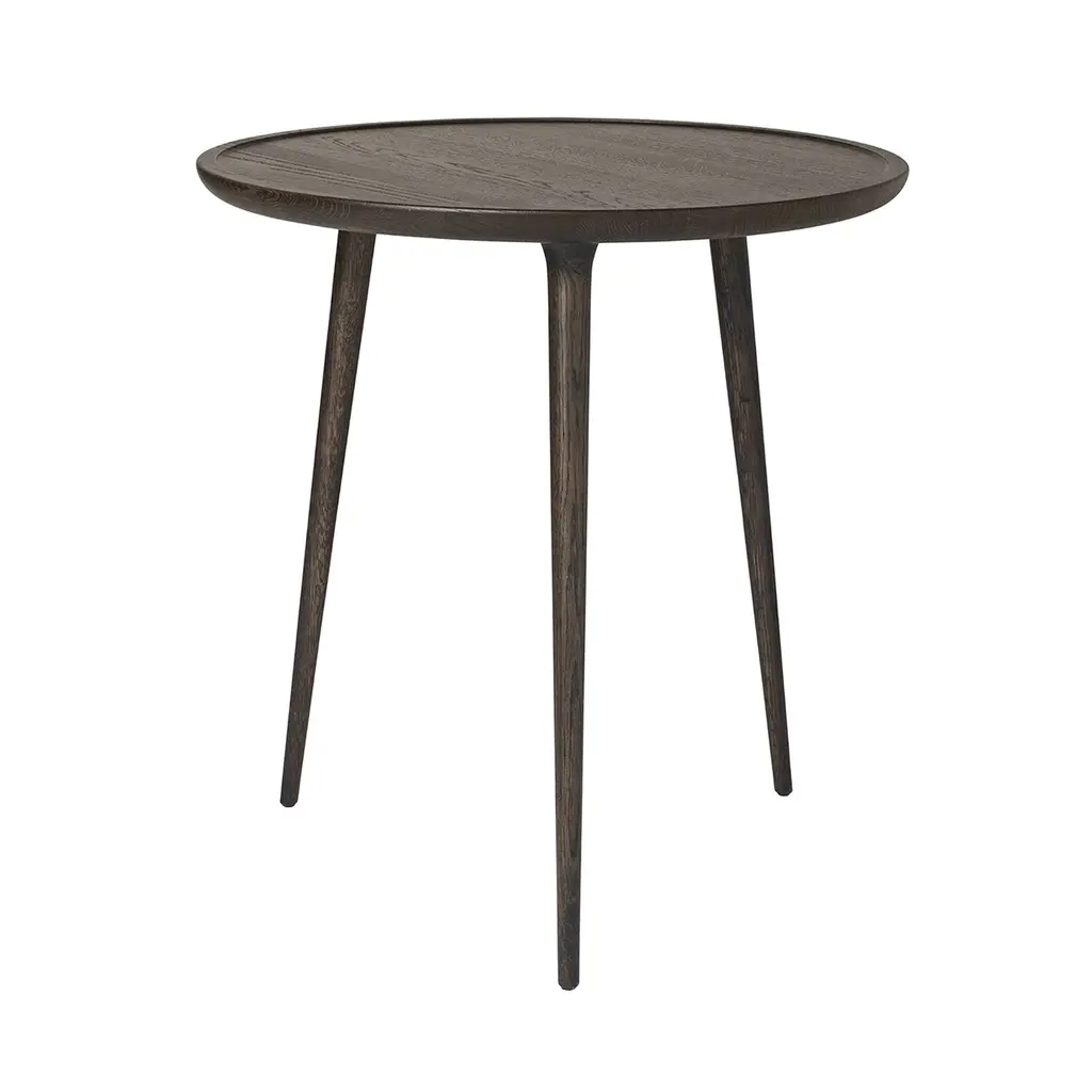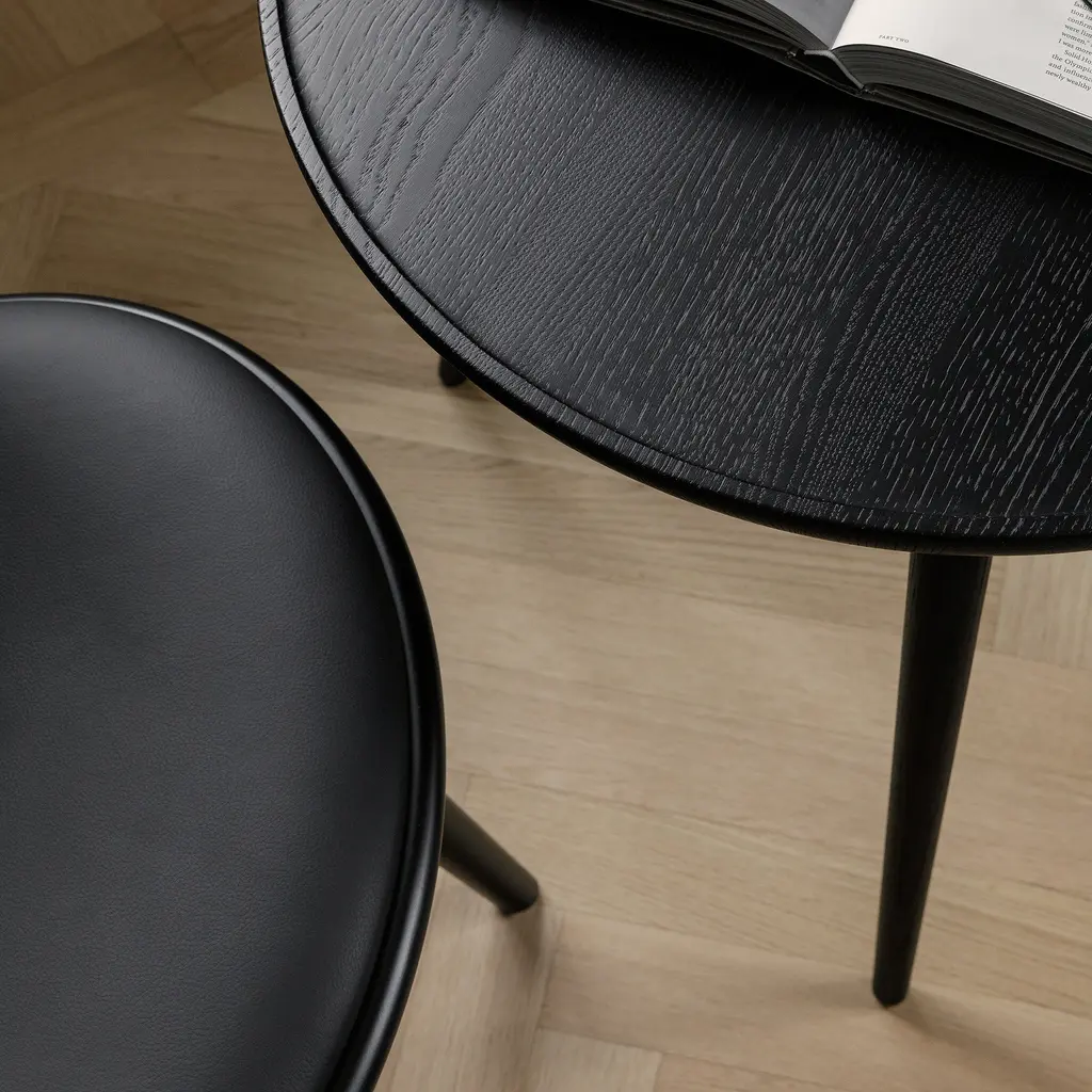 Discover the timeless elegance of Mater’s Accent series, featuring the round wooden side table, designed by the talented Danish architect duo, Space Copenhagen. This charming 3-legged cafe table exudes understated sophistication, skillfully crafted in solid FSC certified oak and available in a selection of tasteful lacquer stains. The round wooden side table showcases a graceful rounded tabletop with curved edges, and gently tapering legs that highlight its handcrafted aesthetic. This adaptable piece effortlessly serves as both a fashionable cafe table and an appealing side table, seamlessly merging aesthetics and practicality. Bring home the essence of Scandinavian design with Mater’s round wooden side table, expertly created by Space Copenhagen, and infuse your space with a touch of minimalist charm and lasting quality.
