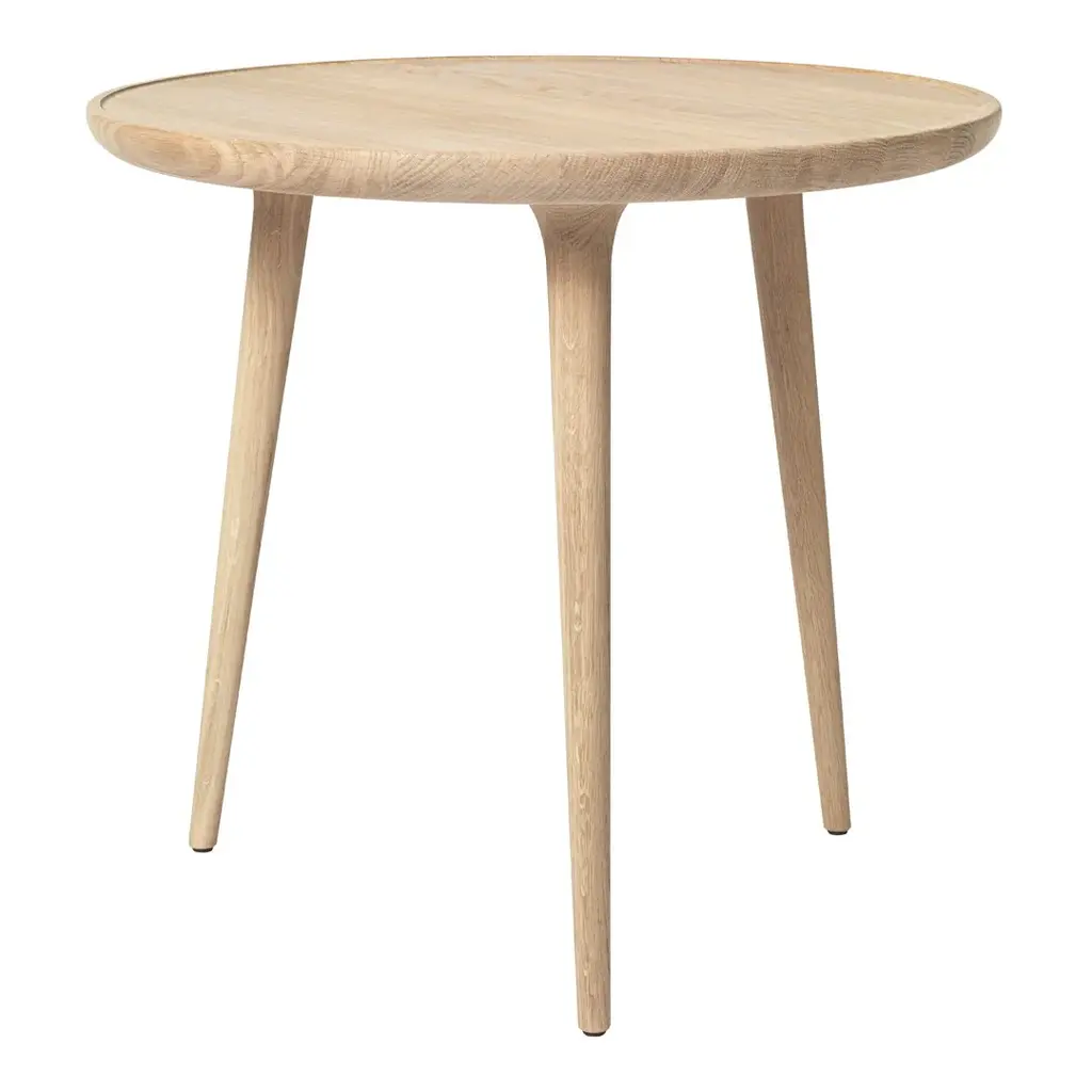 The Mater Accent Table is designed by the Danish architect duo Space Copenhagen and combines a sculptural and handcrafted aesthetic. Following along the same bloodline as the highly successful 2009 Mater High Stool, the Accent collection consists of three coffee tables, a larger oval lounge table and round dining table. The various sizes allow for creativity and flexibility in configuration, and creating different atmospheres for both home and public spaces. Crafted in solid FSC certified oak.
