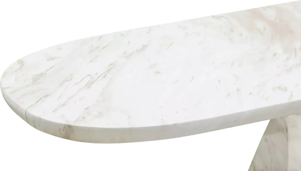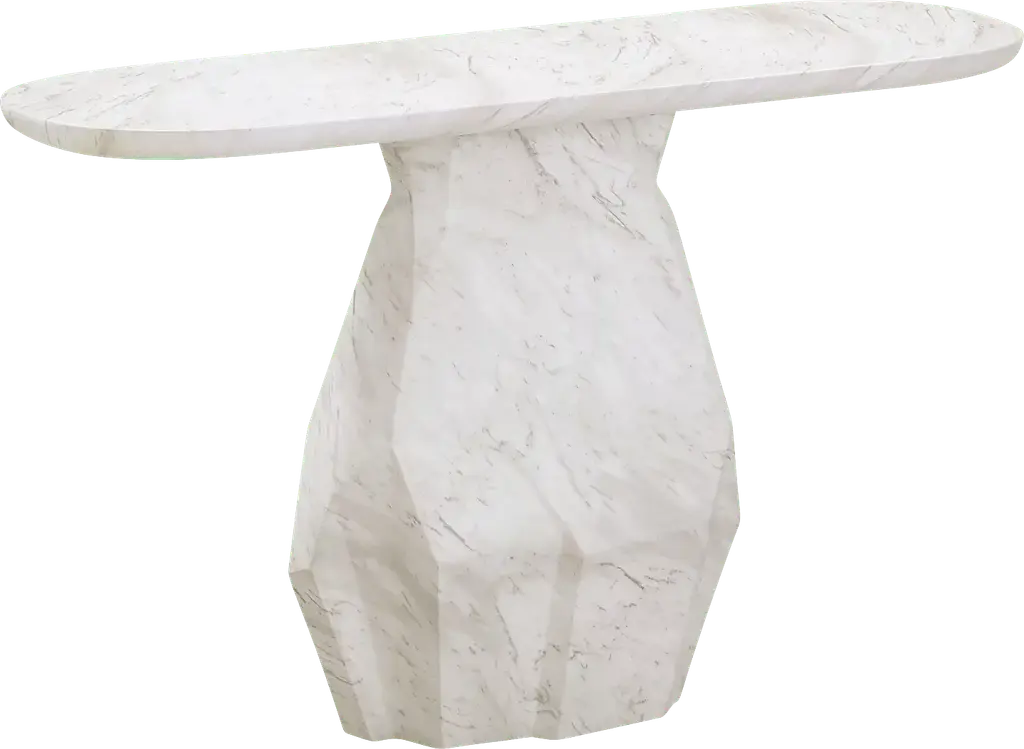 The Accentgate white console table features striking silhouettes that mimic the look of chiseled marble, bringing bold design to any space. This piece is perfect for both indoor and outdoor settings. Customer assembly is required.