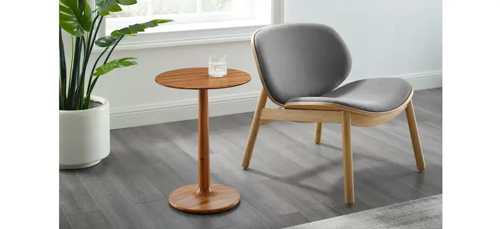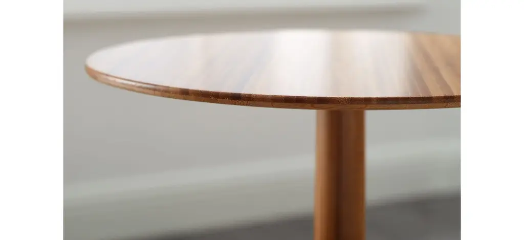 The handcrafted Accents Sol Side Table is all about the beauty of solid Amber bamboo. Perfectly scaled to tuck next to your chair or sofa, it's just the right size for your morning coffee, snack and even your laptop. Crafted in solid Amber bamboo, Sol features a reverse beveled edge tabletop, resting on a slender tapered column and simple base. Easy to move around, this little table provides loads of function in a small footprint.
