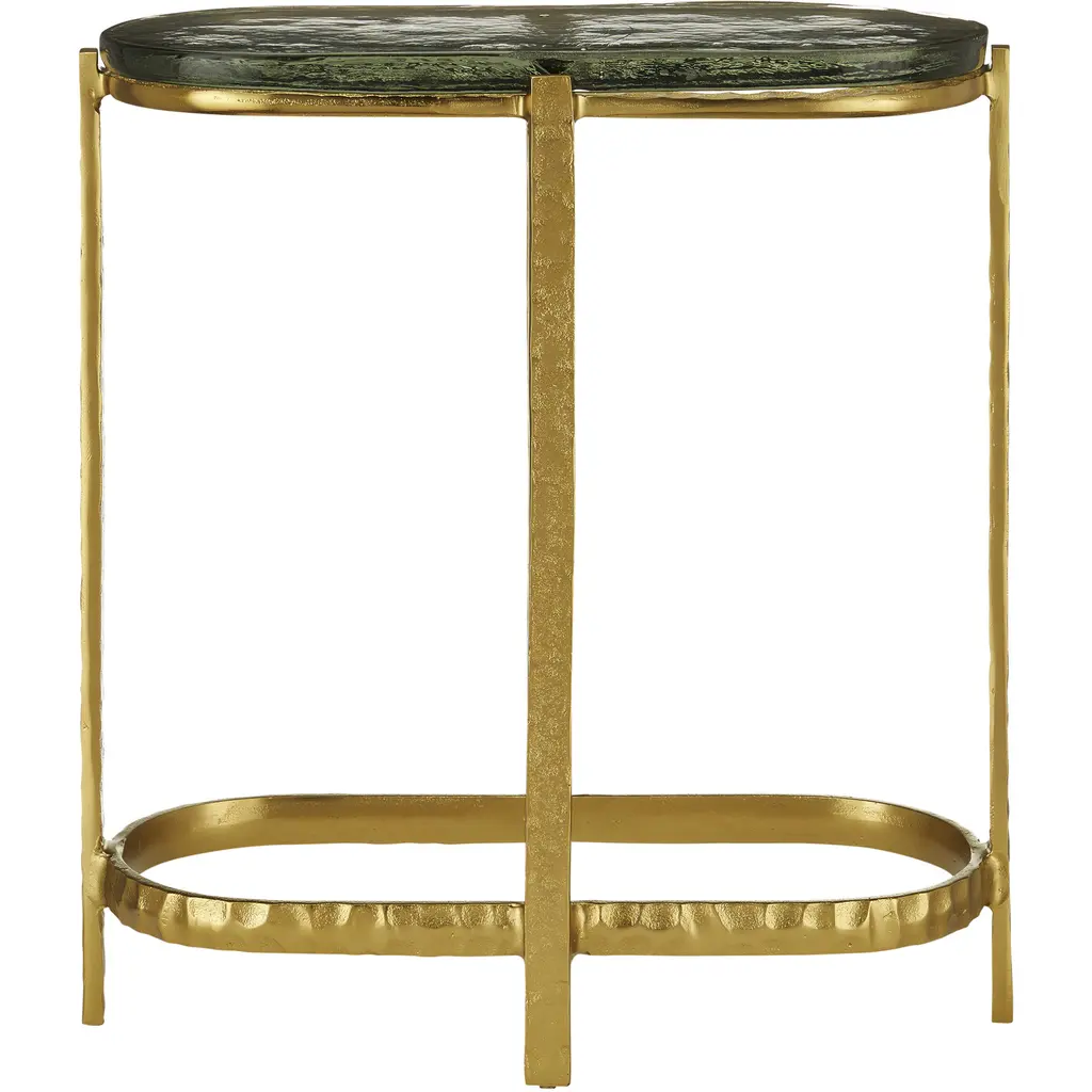 The point at which art and fine craftsmanship meet is where the Acea Gold Side Table resides. Made of cast aluminum poured into a hammered mold to create even greater texture, the gold side table is topped with a cast glass top that is equally textural and luminous. This table will be a piece of jewelry in a space.